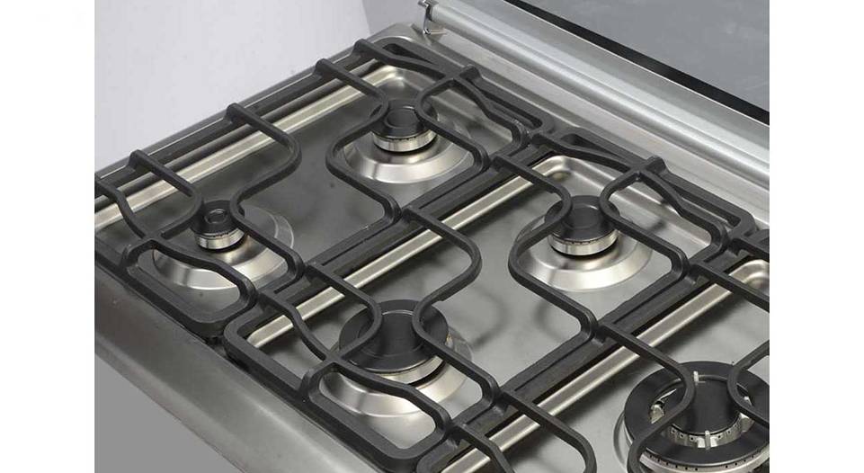 وجود پنج شعله با سه سایز مختلف این امکان را به شما میدهد که بتوانید بنا بر نوع غذا و سایز قابلمه و ماهیتابهای که انتخاب کردهاید، شعله را تنظیم کنید. این گاز دارای یک شعلهی کوچک، دو شعلهی متوسط، یک شعلهی بزرگ و یک شعلهی پلوپز است. شعلهی پلوپز در سمت راست محصول قرار گرفته و فضای کافی برای قراردادن قابلمهی بزرگ روی آن اطرافش وجود دارد. در قسمت میانی شعلهی بزرگ و یکی از شعلههای متوسط قرار گرفتهاند. درنهایت قسمت چپ دستگاه شعلهی کوچک و شعلهی متوسط دیگر قرار گرفتهاند. روی شعلههای گاز شبکهای از جنس چدن قرار دارد و ارتفاع مناسب و کافی قابلمه از شعله را فراهم میکند.