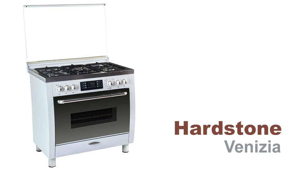 «هاردستون» اجاق گاز مدل «Venizia» خود را با پنج شعله‌ی کوچک و بزرگ به بازار عرضه کرده است که برای خانواده‌های پرجمعیت گزینه‌ی مناسبی محسوب می‌شود. سر شعله‌ها به صورت جفت در طرفین و شعله پلوپز در وسط طراحی شده است. ولوم‌های بزرگ چرخشی تنظیم شعله‌ی گاز و فر را به عهده دارند. پنل نمایش دیجیتالی اجاق در قسمت میانی قرار گرفته و به صورت لمسی کار می‌کند. فر جادار دستگاه مدل Venizia با ظرفیت 88.4 لیتر دست شما را در تهیه‌ی انواع غذا و دسر باز گذاشته است. در قسمت فر شیشه‌ای بوده و دستگیره‌ی فلزی برای باز کردن آن نصب شده است. برای مشاهده‌ی آسان فضای داخل فر، چراغ داخلی برای آن در نظر گرفته شده است. گفتنی است این مدل مجهز به عملکرد جوجه‌گردان هم هست. این دستگاه دارای درپوش شیشه‌ای محافظ است که می‌توانید در زمان‌هایی که به مدت طولانی از گاز استفاده نمی‌کنید، آن را پایین بیاورید. پایه‌های این اجاق گاز قابل تنظیم است تا اجاق در حالت تراز و صاف قرار گیرد. برخورداری از سوئیچ ایمنی فر، از دیگر مزایای این مدل است. به کمک شبکه‌های فلزی فاصله‌ی کافی بین شعله و قابلمه و ماهیتابه‌ها ایجاد می‌شود. از آنجایی که این شبکه‌ها قابل جداسازی هستند امکان تمیزکردن آسان سطح گاز فراهم شده است.