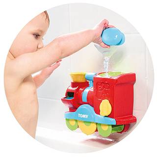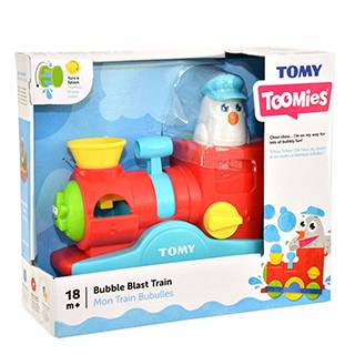 اسباب بازی تامی مدل Bubble Blast Train یک قطار مناسب جهت استفاده در حمام است که از آن میتوان برای کودکان بالای یک و نیم سال استفاده کرد. این اسباب بازی زیبا می‌تواند به یک دوست و همراه همیشگی کودک شما در حمام تبدیل شود و باعث شود تا کودک شما، آب را دوست خود بداند. پنگوئن کلاهدار روی قطار را بردارید و آن را پر از آب کرده و آب را درون محفظه قطار بریزید. سپس، مایعی داخل آن ریخته و اهرم روی قطار را به سمت پایین کشیده و رها کنید تا شاهد خروج حباب از قسمت ابتدایی قطار باشید. اما این تنها جاذبه این قطار زیبا نیست بلکه میتوانید مجددا با پر کردن محفظه انتهایی قطار و چرخاندن پیچ انتهای قطار، شاهد ریزش آب از زیر قطار باشید. این محصول می‌تواند کودک را در حمام بیشتر سرگرم شده و شادی بیشتری را تجربه کند.