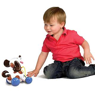 اسباب بازی تامی مدل Sit & Walk Puppy یک سگ دوست داشتنی دارای 4 چرخ و با گوش های متحرک بلند است که بندی به قلاده آن جهت کشیدن اسباب بازی، متصل است. این محصول یک اسباب بازی موزیکال است که برای کودکان بالای 10ماه توصیه می شود. با گرفتن و کشیدن بند متصل به قلاده، کودک شما میتواند اسباب بازی را به دنبال خود بکشاند و این محصول را به دوست خوب و همراه همیشگی خود تبدیل کند. علاوه بر این، این امر باعث تشویق شدن کودک برای حرکت کردن و همینطور افزایش تحرک در کودک میشود. یکی از مزیتهای این اسباب بازی پارس کردن است که میتوان صدا را از بلندگوی تعبیه شده بر روی سینه سگ شنید که این امر به خودی خود باعث حرکت کردن مجدد کودک میشود. از مزیتهای دیگر این اسباب بازی تقویت احساسات کودک است. این کالا منطبق با استاندارد ASTM F963 میباشد و در ساخت آن از مواد خالص استفاده شده است که باعث جلوگیری از ایجاد حساسیت در کودک شما میشود.