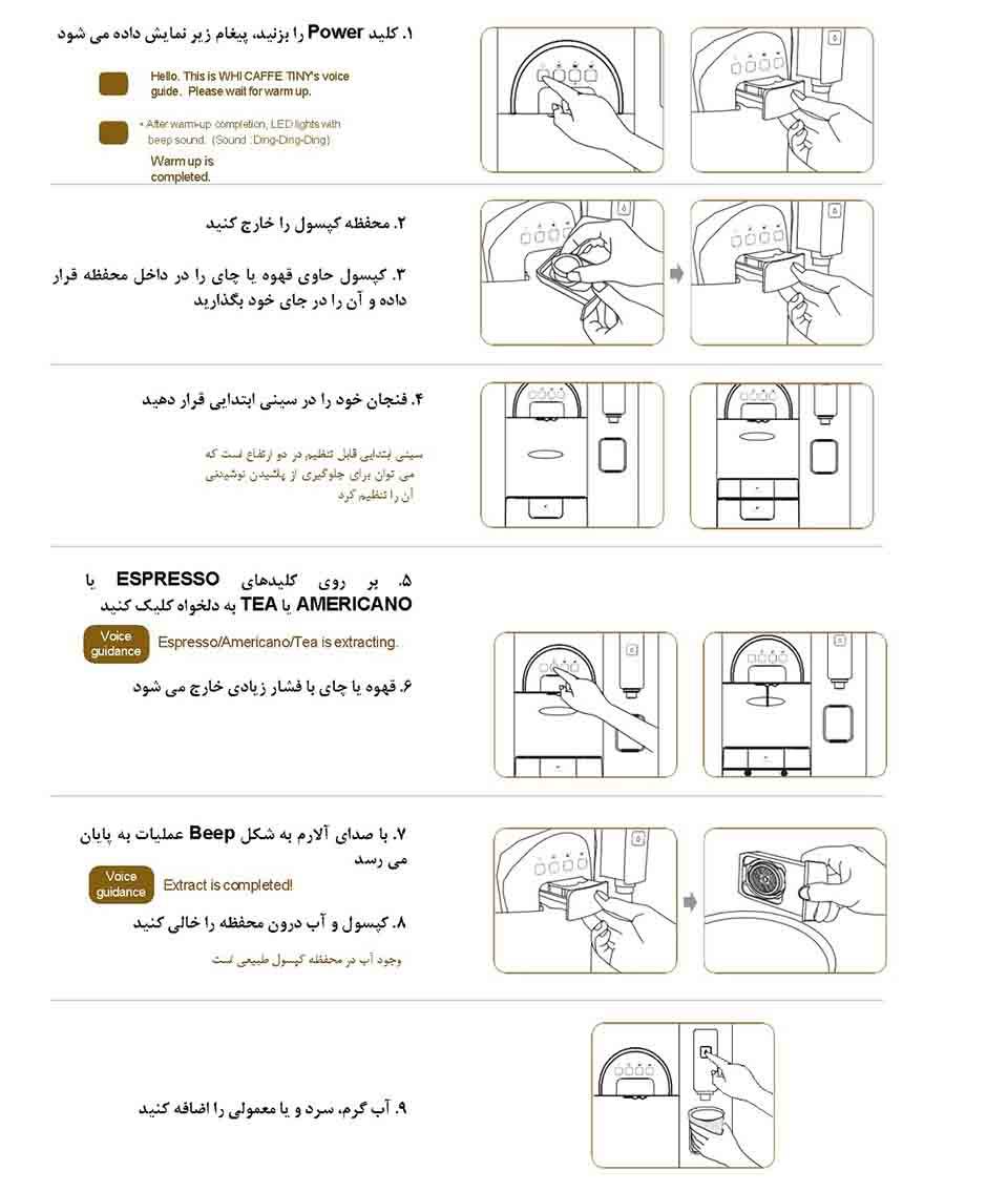سیستم Whi caffe از کپسول‌های Dolce Gusto ساخت کشور ایتالیا با رنج وسیعی از مزه‌های گوناگون قهوه و چای جهت برآوردن سلایق مختلف بهره می‌برد. دسترسی آسان به کپسول‌های Dolce Gusto در کلیه فروشگاه های معتبر و فروشگاه‌های اینترنتی در سراسر کشور از مزایای این دستگاه است.