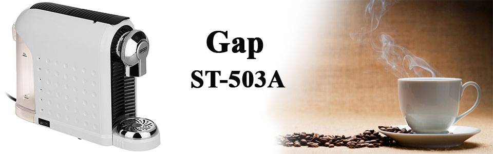 اسپرسوساز «گپ» مدل «ST-503A‌» دستگاهی ساده و کاربردی با عملکرد تمام اتومات برای تهیه‌ی نوشیدنی‌های متنوع از قهوه‌های کیسه‌ای خوش‌طعم است. کافی است کاربر پس از قراردادن لیوان خود زیر خروجی و قرار‌دادن کیسه‌ی قهوه داخل دستگاه، کمی منتظر باشد تا قهوه آماده شود و داخل لیوان کوچک بریزد. کار با این دستگاه بسیار ساده است و تنها لازم است، مخزن آب در پشت دستگاه به‌ میزان کافی آب داشته باشد و کیسه‌های قهوه دورن جای مخصوص قرار بگیرند. اسپرسوساز گپ مدل‌ ST-503A‌ ظاهر زیبایی هم دارد و در محل استفاده مثل منازل و ادارات، به اتاق کار یا آشپزخانه زیبایی خاصی می‌بخشد. روند خارج‌شدن کیسه‌های قهوه‌ی مصرف‌شده، به‌صورت اتوماتیک انجام می‌شود. این محصول ساخت کشور ایتالیا است و از کیفیت بسیار خوبی برخوردار است؛ همچنین گپ از برترین و معتبرترین تولید و عرضه‌کنندگان دستگاه‌های قهوه و اسپرسوساز است که در سراسر جهان شناخته‌ شده است.