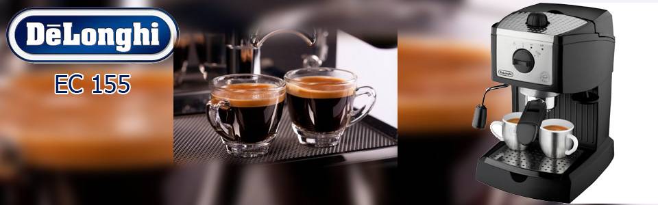 اسپرسوساز «دلونگی» (Delonghi) مدل «EC155» دستگاهی باکیفیت است و بدنه‌ی آن از پلاستیک ساخته شده است. توان آن 1100 وات و خروجی بخار و آب آن 15 بار است. این دستگاه امکان تهیه‌ی اسپرسو، کاپوچینو و کف‌شیر را دارد. پیچ تنظیم خاموش/روشن و تنظیمات دستگاه در جلوی آن قرار دارد. سینی چکه‌گیر هم قطرات قهوه‌ای را که از دستگاه می‌چکد، جمع می‌کند.