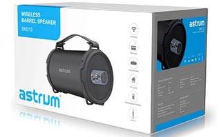 محصول «SM310» یک اسپیکر قابل حمل قدرتمند از شرکت «Astrum» است که 1050 گرم وزن دارد و از طریق بلوتوث نسخه 2.1 و کابل AUX به تلفن همراه یا پخشکنندهی صوتی شما متصل میشود و امکان گوشکردن به موسیقی را برایتان فراهم میکند. این محصول از طریق یک باتری داخلی انرژی مورد نیاز خود را تأمین میکند. این باتری 3000 میلیآمپری میتواند تا ساعتها انرژی مورد نیاز را تامین کند. در قسمت کناری این اسپیکر کلید روشن و خاموش کردن، پورت شارژ Micro USB، پورت ورودی صدای 3.5 میلیمتری، شیار کارت حافظه MicroSD و کلیدهای کنترل صدا و موسیقی تعبیه شده که میتواند بسیار کاربردی باشند. بلندگوها در این محصول شرکت Astrum در قسمت کناری تعبیه شدهاند که میتوانند صدایی باکیفیت و شفاف ارائه کنند. توان کلی اسپیکر SM310 برابر با 12 وات است. همچنین فرکانس پاسخگویی 100هرتز تا 20 کیلوهرتز این اسپیکر صدایی شفاف ارائه میدهد. اگر به دنبال یک اسپیکر قابل حمل با طراحی ساده و صدایی قدرتمند هستید، SM310 میتواند گزینهی بسیار مناسبی برای شما باشد.