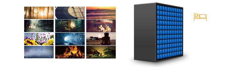 این اسپیکر دارای 22 منظره مناسب از پیش تعریف شده برای استفاده در زمان خواب می باشد که با انتخاب هر کدام از این مناظر نورپردازی کامل بر روی صفحه انجام می پذیرد، هم چنین می توانید در این حالت از پخش آهنگ با کیفیت بالا نیز لذت ببرید.