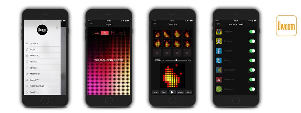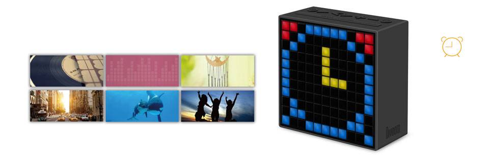 اسپیکر «TimeBox» محصولی از شرکت «دیووم» است که از طریق فناوری بلوتوث به تلفنهمراه یا پخشکنندهی صوتی شما متصل میشود و شما را در گوش کردن به موسیقی مور علاقهتان همراهی میکند. TimeBox علاوهبر اینکه میتواند به عنوان یک اسپیکر بلوتوثی برای شما انجام وظیفه کند، به کمک نشانگرهای LED مکعبی شکلی که در قسمت جلویی آن قرار دارد، میتواند ساعت را به شما نشان دهد. در صورتیکه TimeBox را از طریق بلوتوث به تلفنهمراهتان متصل کنید، میتواند وضعیت هوا را هم به شما ارایه کند. شرکت دیووم همراه این محصول اپلیکیشنی برای تلفنهای همراه هوشمند ارایه کرده است که به کمک آن میتوان به شخصی سازی اسپیکر پرداخت. تعداد زیادی الگو در این اپلیکیشن برای نشان دادن روی نشانگرها قابل دسترس است که میتوان از آنها استفاده کرد. در قسمت بالایی این محصول کلیدهایی برای کنترل روی صدا، تعویض کردن الگو و پخش یا عدم پخش موسیقی قابل مشاهده است. TimeBox میتواند شما را از خواب هم بیدار کند. به کمک قابلیت آلارم که روی این محصول ارایه شده است، میتوان از آن به عنوان یک ساعت کوکی استفاده کنید تا هیچوقت از قرارهای مهم زندگیتان عقب نمانید. این اسپیکر انرژی خود را از یک باتری داخلی لیتیوم یونی 2000 میلیآمپری تامین میکند. به کمک این باتری میتوان تا 6 ساعت به پخش موسیقی پرداخت. برای شارژ کامل باتری TimeBox هم تنها به سه تا چهار ساعت زمان نیاز است.