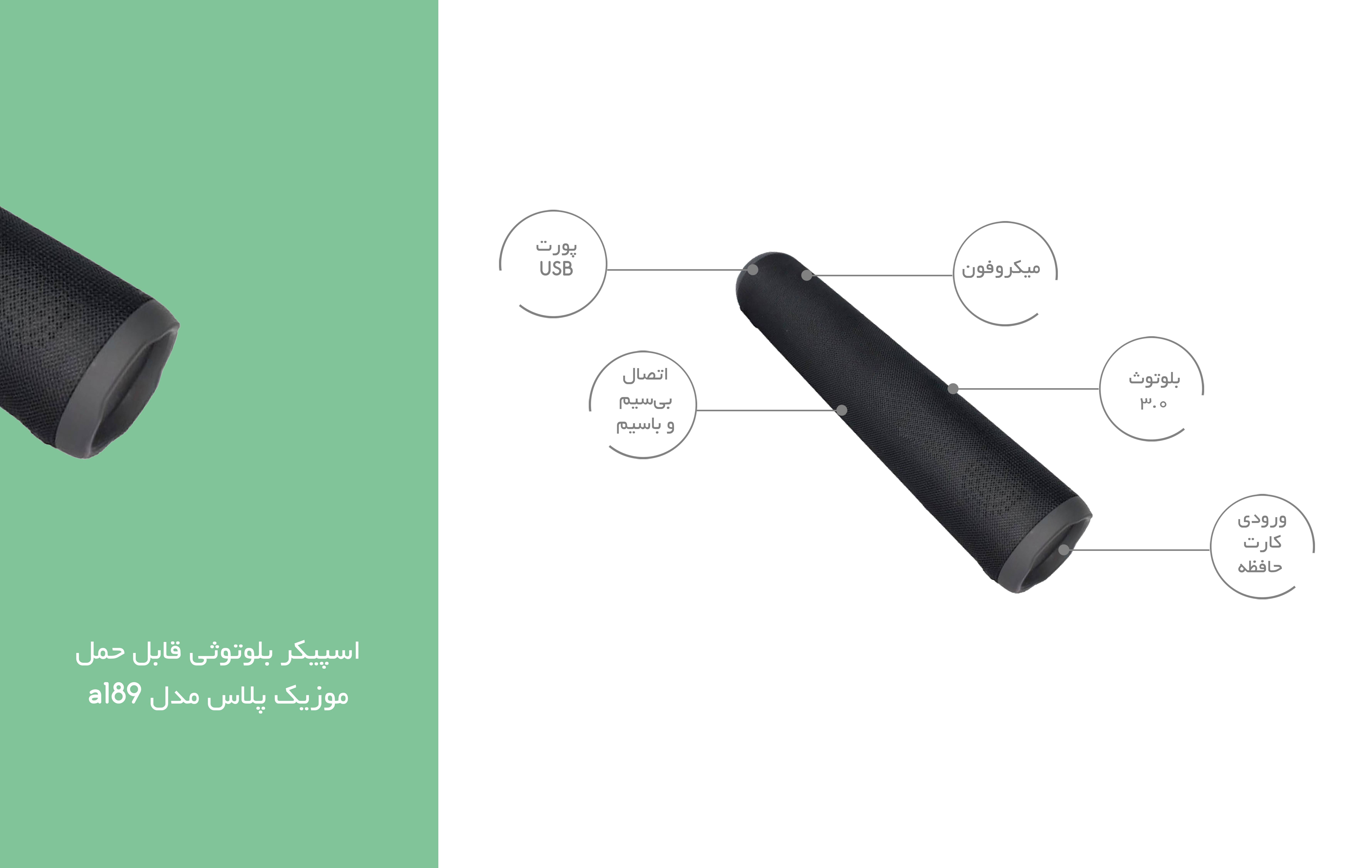 مشخصات فنی Music plus A189 portable bluetooth Speaker
