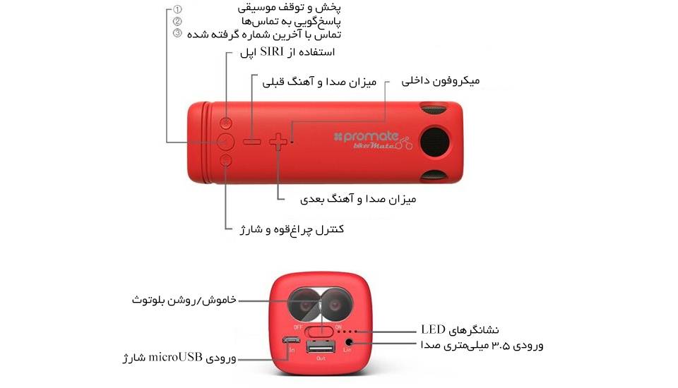 مدل «bikerMate» از سری اسپیکرهای بلوتوثی قابلحمل شرکت «پرومیت» (Promate) است که ویژگیهای متعددی در چنته دارد. این اسپیکر بلوتوثی چندین گزینهی اتصال پیش روی کاربر گذاشته است که همین ویژگی از دلایل برتری bikerMate نسبت به دیگر اسپیکرهای قابلحمل تلقی میشود؛ کاربر میتواند با اتصال بلوتوث یا جک 3.5 میلیمتری موزیک موردعلاقهی خود را پخش کند. اسپیکر بلوتوثی bikerMate، به لطف گواهی IPX4، ضد آب است و در صورت پاشیده شدن آب، میتواند جان سالم به درببرد. این اسپیکر قابلیت نصب روی فرمان دوچرخه دارد؛ بنابراین میتوان گفت ویژگی ضدآب در BikerMate بسیار حیاتی محسوب میشود. برای تبدیل BikerMate به یک اسپیکر همهفنحریف، شرکت پرومیت آن راه به یک چراغقوه مجهز کرده است. باتری که شرکت پرومیت در این اسپیکر بلوتوثی قابلحمل بکار برده است، ظرفیت 8000 میلیآمپر ساعتی دارد. این اسپیکر را میتوانید بهعنوان پاور بانک نیز استفاده کنید؛ ولتاژ ورودی این اسپیکر بلوتوثی قابلحمل 5 وات، شدتجریان ورودی 1.5 آمپر؛ ولتاژ خروجی 5 ولت و شدتجریان خروجی 1 آمپر است. bikerMate با تمامی دستگاههای بلوتوثی سازگار است. حداکثر برد بلندگوی این اسپیکر شرکت پرومیت 10 متر است؛ امپدانس آن برابر با 4 اهم و توان خروجی 5 واتی دارد.