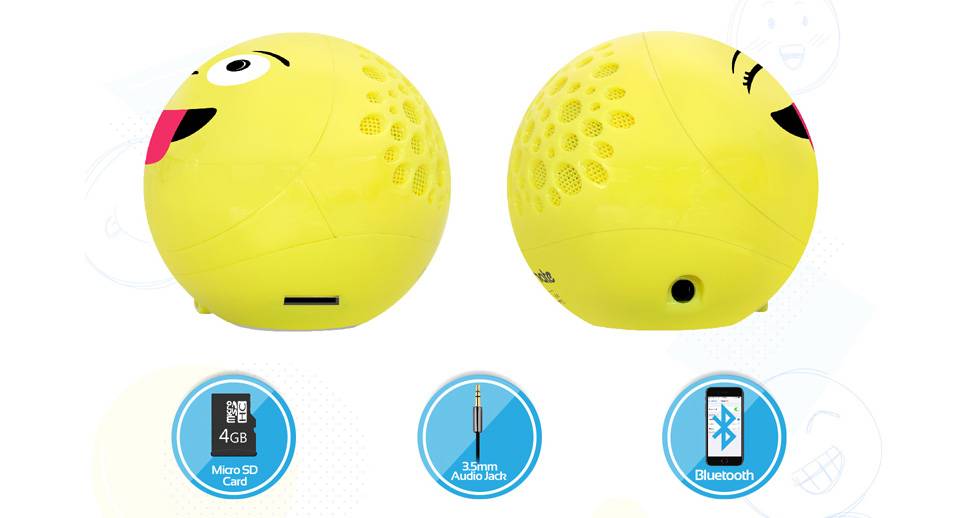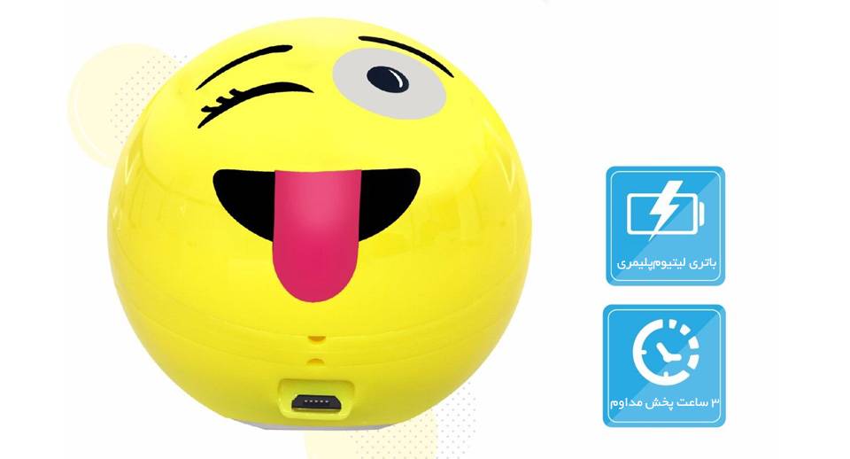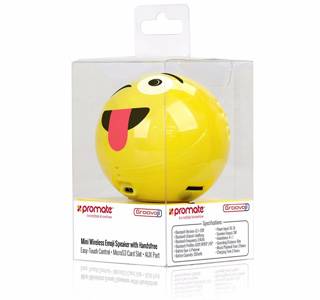 امروزه ایموجی ها یا همان شکلکهای مجازی به بخش جداییناپذیری از پیامرسانها تبدیل شدهاند. با توجه به محبوبیت انکارنشدنی شبکههای اجتماعی، ایموجیها نیز در دلیل لوازم جانبی زیادی به شکل استیکر یا لوگو یا ظاهر شدهاند. این ایموجیها آنقدر محبوب شدهاند که به فیلم، نقاشی، تبلیغات و دیگر جنبههای زندگیمان نیز نفوذ کردهاند. همانطور که از ظاهر اسپیکر Groovoji مشخص است، این محصول درواقع اسپیکری کلاسیک است که در غالب ایموجی قرار گرفته و با ظاهر جالب و فانتزی به بازار عرضه شده است. این اسپیکر به شکل کروی و با ابعاد بسیار کوچک و جمعوجور تولید شده است. بنابراین، اولین ویژگی اسپیکرهای حملشدنی در این محصول نیز بهخوبی رعایت شده است. ابعاد این اسپیکر آنقدر کوچک است که میتوانید بهراحتی آن را در یک دست بگیرید یا Groovoji را در کیف و کولهپشتی خود بگذارید. اگر از طرفداران شبکههای اجتماعی باشید حتماً از صورتکی که در این اسپیکر قرار دارد استفاده کردهاید. این صورتک روی قسمت جلویی این اسپیکر نقش بسته است. در قسمت پایین این شکلک، ورودی micoUSB قرار گرفته است که برای شارژ اسپیکر مورداستفاده قرار میگیرد و در سمت چپ این محصول نیز ورودی کارت حافظه وجود دارد و سمت راست این صورتک، میزبان ورودی 3.5 میلیمتری صداست. اما همچنان ورودی بلوتوث را میتوان بهعنوان اصلیترین و راحتترین شیوه اتصال به این اسپیکر دانست.