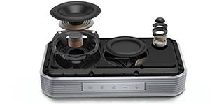 • دارای 5 درایور شامل: درایور 2 اینچ (full range)، یک Subwoofer سه اینچ و دو passive radiators