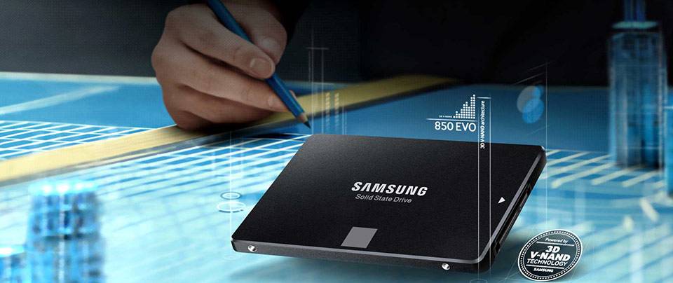 اس اس دی «850 Evo» محصولی از برند کره‌ای «سامسونگ» (Samsung) است. این اس اس دی در فرم فاکتور 2.5 اینچی تولید شده و در کامپیوترهای دسکتاپ و لپ‌تاپ‌ها قابل استفاده است. در اس اس دی 850 Evo از حافظه‌های فلش V-NAND استفاده شده و همین موضوع، کیفیت و سرعت عملکرد محصول را تا حد زیادی افزایش داده‌است. در 850 Evo شاهد سرعت نوشتن ترتیبی بالایی هستیم و حداکثر سرعت 520 مگابایت بر ثانیه با استفاده از آن حاصل خواهد شد. چنین سرعتی با استفاده از فناوری TurboWrite سامسونگ به دست آمده و حداکثر سرعت اس اس دی در خواندن اطلاعات را به 540 مگابایت بر ثانیه رسانده‌است. سامسونگ با استفاده از فناوری دیگری که حالت سریع (RAPID Mode) نام دارد، سعی کرده تا سرعت اس اس دی 850 Evo را باز هم افزایش دهد. در این فناوری با استفاده از رم کامپیوتر به عنوان حافظه‌ی کش (Cache) سرعت کامپیوتر تا 2 برابر افزایش پیدا می‌کند و کاربر شاهد عملکرد سریع‌تری از کامپیوتر خواهد بود. عمر زیاد و قابل اطمینان بودن 850 Evo را به یک حافظه‌ی محبوب در میان کاربران تبدیل کرده‌است. با استفاده از این محصول می‌توانید عمر مفیدی از 75 تا 300 ترابایت را بسته به ظرفیت انتخابی‌تان به دست آورید. این عدد، نشان‌دهنده‌ی عمر مفید اس اس دی است و بهترین سطح عملکرد 850 Evo را نشان می‌دهد. به‌کارگیری تکنولوژی رمزگذاری در سطح سخت‌افزاری، امنیت داده‌های شما در 850 Evo را تضمین می‌کنند. این اس ای دی از سیستم رمزگذاری 256 بیتی AES استفاده می‌کند و قادر است بدون تاثیر منفی در سرعت کامپیوتر، از اطلاعات در برابر دسترسی‌های ناخواسته حفاظت کند. حافظه 850 Evo سامسونگ در ظرفیت‌های گوناگونی تولید شده و می‌توان آن را از 120 گیگابایت تا 4 تربایت تهیه کرد. سامسونگ این محصول را برای انجام دادن کارهای روزانه‌ای که در کامپیوترهای امروزی انجام می‌شوند، بهینه کرده‌ و توانسته با تولید محصولی با سرعت خوب و ماندگاری زیاد، آن را به پرفروش‌ترین حافظه‌ی کامپیوتر در سطح جهانی تبدیل کند.