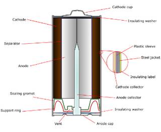 ظرفیت باتری‌های آلکالاین در مقایسه با باتری‌های عادی روی-کربن کلراید بیشتر است زیرا اکسید منگنزی که در باتری‌های آلکالاین استفاده می‌شود خالص‌تر و متراکم‌تر است. درنتیجه فضای اشغالی توسط مؤلفه‌های داخلی مانند الکترودها کمتر است. بسته به کیفیت و نوع، باتری‌های آلکالاین می‌توانند تا 5 برابر ظرفیت بیشتری را ارائه دهند.