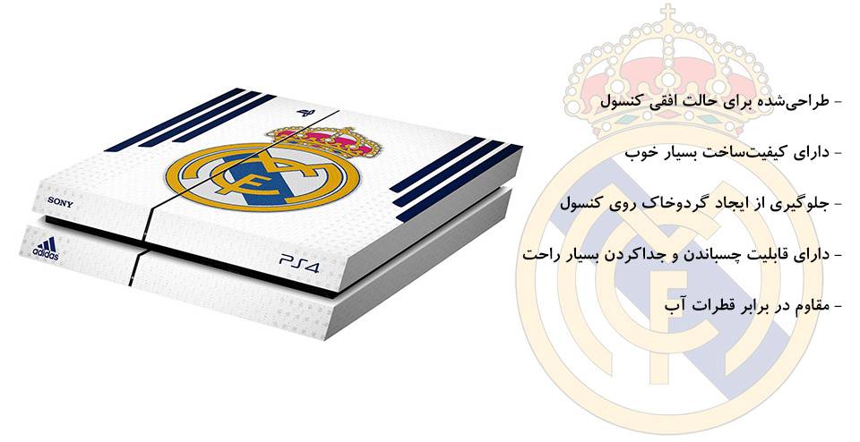 طرح «Real Madrid CF White 2016» برچسب تزئینی بسیار جذابی برای طرفداران تیم رئال مادرید بهحساب میآید. این محصول که با کیفیتساخت بسیار خوبی طراحی شده، یکی از لوازم جانبی پرکاربرد این کنسول است که میتواند شکل ظاهری PS4 شمار ا از حالت یکنواخت دربیاورد. این برچسب علاوهبر تغییر شکل ظاهری کنسول شما، میتواند از آن در برابر گردوخاک و تا حدودی در برابر خیسشدن محافظت کند. این محصول بهراحتی روی کنسول شما قرار میگیرد و چسب آن از کیفیت بالایی برخوردار است. همچنین، درصورتیکه بخواهید این برچسب را از پلیاستیشن خود جدا کنید، اثری از چسبها روی کنسول باقی نمیماند و بهراحتی از آن جدا میشود. طرح این مدل، شامل لوگوی تیم مذکور است. کیفیت چاپ عکسی که روی برچسب قرار گرفته است، بسیار خوب و دقیق است. گفتنی است که این برچسب از نوع افقی است و مناسب برای حالت خوابیدهی پلیاستیشن محسوب میشود.