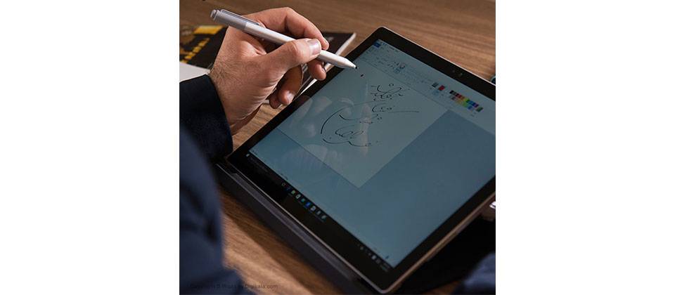 حس نوشتن با قلم سرفیس روی نمایشگر پرو 4 بسیار شبیه به حس نوشتن با مداد روی کاغذ است.