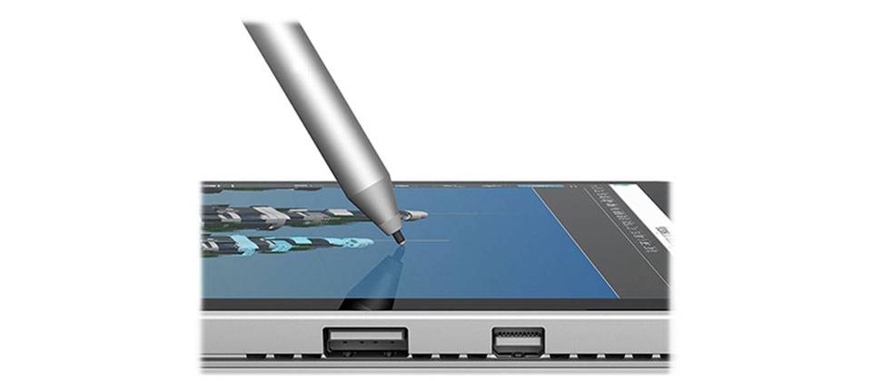 مایکروسافت تغییرات بزرگ و مهمی را در قلم نسل جدید سرفیسها به وجود آورده است. شاید مهمترین تغییر قلم سرفیس پرو 4 را باید در تشخیص سطح فشار بالای آن بدانیم. این قلم میتواند تا 1024 سطح فشار را تشخیص دهد که در مقایسه با 256 سطح فشار سرفیس پرو 3، بسیار حساستر و دقیقتر است. بر لبهی بالایی این قلم، یک پاککن تعبیه شده که کاملا کاربردی است. همچنین این قلم بهصورت آهنربایی به بدنهی دستگاه متصل میشود. باید گفت که این نوع حالت اتصال در مقایسه با حالتی که پیشازاین در سرفیس پرو 3 وجود داشت، بسیار راحتتر است؛ اما از همه مهمتر، قلم سرفیس پرو 4 هنگام نوشتن، حس خیلی خوبی به کاربر میدهد.