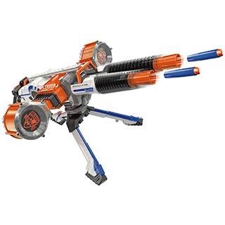 بچه ها می توانید با « تفنگ اسباب بازی نرف مدل N-Strike Rhino Fire» بااقتدار دشمانتان را شکست دهید. این تفنگ دو مخزن تیراندازی دارد و گنجایش نگهداری 25 تیر (Elite) در هرکدام از مخازنش دارد. این مسلسل برای کودکان بالای 8 سال طراحی شده و می‌توان آن را بر روی پایه قرار داد و بازی کرد. البته سه‌پایه‌ی آن قابلیت جدا شدن هم دارد. مسلسل N-Strike Rhino Fire را بر روی زمین گذاشته و به‌صورت پیاپی و بی‌صدا به سمت دشمنانتان هدف‌گیری کنید. نگران فاصله نباشید. شما با این تفنگ می توانید تا برد 27 متر دشمنانتان را نابود کنید.