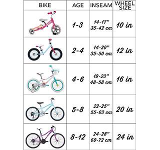 دوچرخه‌ها بر اساس سایز چرخ و فریم انتخاب می‌شوند اما برای کودکان تنها سایز چرخ در تعیین سایز مورد نظر کفایت می‌کند. البته در زمان خرید توجه داشته باشید تا کودک را روی دوچرخه قرار داده و آن را با توجه به قد او اندازه بگیرید. زیرا کنترل کودک در زمان دوچرخه‌سواری بر روی دوچرخه از آسیب‌های جدی جلوگیری می‌کند.