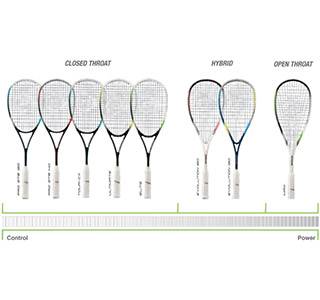 یکی از مواردی که باید در هنگام انتخاب راکت اسکواش بدانید توجه به سر راکت است. بهطور کلی دو فرم از سر در راکتهای اسکواش طراحی شده است که به آنها Open Throat و Close Throat گفته میشود. در هنگام بستن زه راکت، طول زه در این نوع راکتها مهم است. در راکتهای Open Throat طول زه، میزان تنش و ضربه به توپ را مشخص میکند اگر زهها در جهت طولی بیشتر باشد به عنوان مثال 12 Main String بهتر است بین 29 تا 30 پوند باشد. به طول کلی تنش در راکتهای اسکواش بین 27 تا 28 پوند است که با توجه به طول زه و تعداد زه در راکت، میزان تنش و ضربه به توپ تعیین میشود.