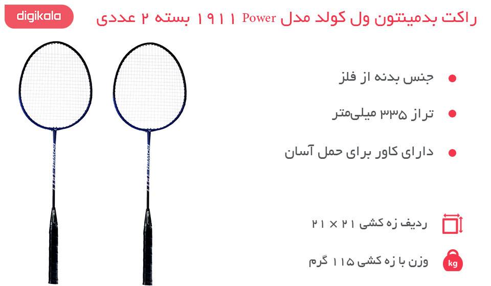مشخصات کلی راکت بدمینتون ول کولد مدل Power 1911 بسته 2 عددی