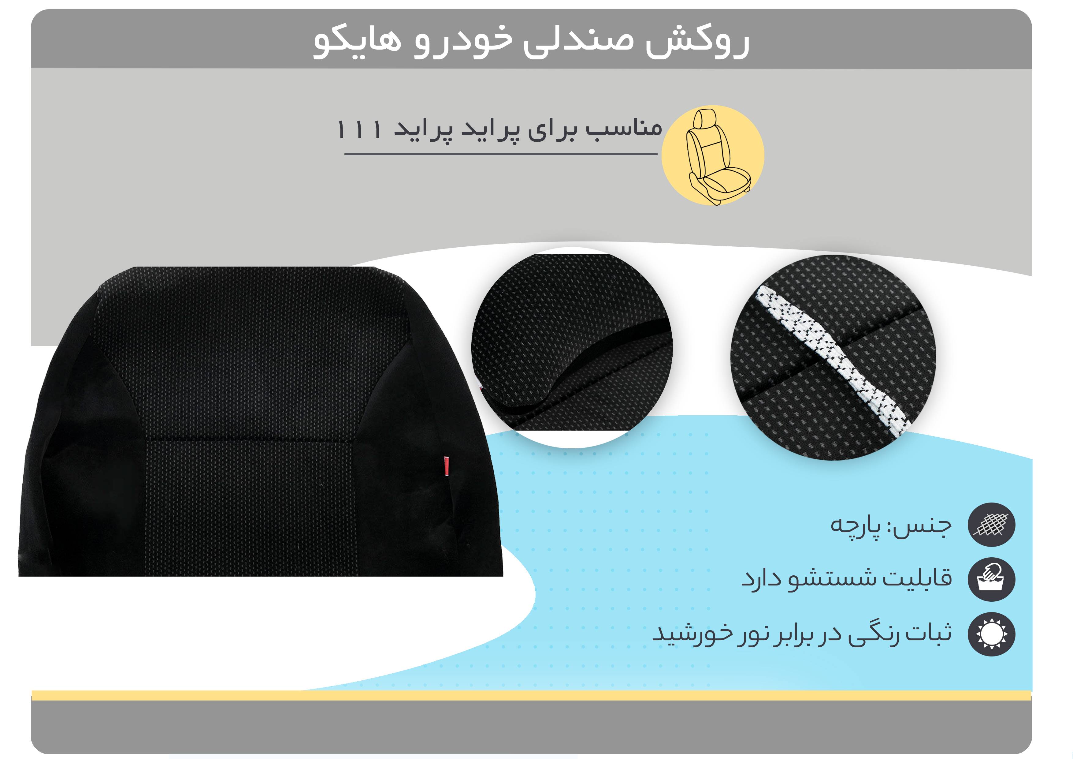 اگر خودرویی دارای صندلی نباشد عملا نمیتوان با آن رانندگی کرد. صندلیها نقش بسیار مهمی در خودرو و یا حتی نوع راندن ما دارند. برای این صندلیها باید روکشی انتخاب شود که در برابر بعضی از عوامل مقاومت خوبی از خود نشان دهند. از این عوامل میتوان به کند کردن فرایند تعرق بدنی انسان پرداخت که در زمان رانندگی بسیار کلافه کننده و در بعضی از مواقع به دلیل پرت شدن حواس راننده دارای خطر است. از دیگر مواردی که میتوان به آن اشاره داشت این است که در برابر تابش نور خورشید دچار تغییر رنگ نشود تا چهره فضای داخلی خودرو را برهم بزند. برای این شرایط میتوان مقاومت در برابر کشیدگی و پارگی را نیز اضافه نمود که موضوع بسیار مهمی در کیفیت ساخت است. روکش صندلی خودرو هایکو که برای خودرو پراید ۱۱۱ در طرح دنا به بازار عرضه شدهاند و از کیفیت مطلوبی برخوردار هستند. برای این روکش میتوان به جز موارد یاد شده، از شست و شوی راحت و بدون تغییر را یاد کرد.