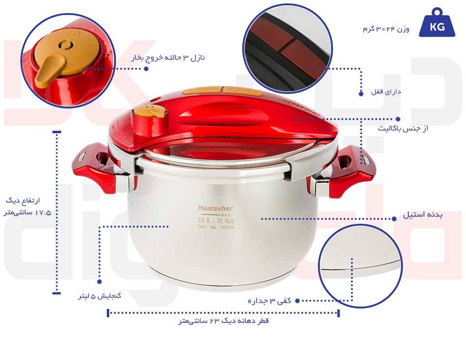 مشخصات فنی Hascevher Clipso Yaprak 5 Pressure Cooker
