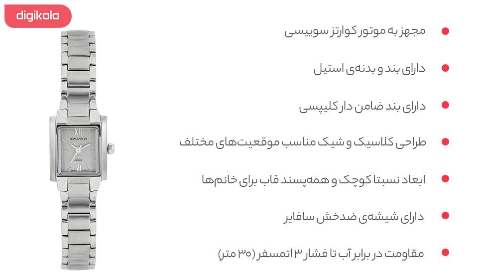 مشخصات فنی Romanson TM5596LL1WAA2W Watch For Women