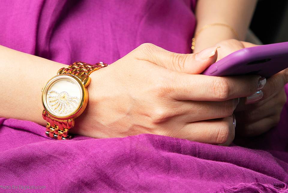 استفاده از ساعت مدت طولانی ایست که میان مردم بسیار رایج و پرکاربرد است؛ چرا که تقریبا اکثر فعالیتهای ما در گرو زمان بوده و وابسته به آن است. جدا از کاربرد نشان دادن زمان، ساعت از جمله مهمترین اکسسوریهای شخصی است که در رقم زدن استایل افراد نقش به سزایی دارد. انتخاب ساعت متناسب با نوع استفاده، کارکرد و جنس آن صورت میگیرد و به لحاظ ظاهری باید نکاتی چون ابعاد مچ دست، رنگ آن و همچنین شکل قاب ساعت را در نظر گرفت. این ساعت که دارای ترکیب رنگی نقرهای رزگلد است قابلیت هماهنگ شدن با انواع رنگ پوست را دارد، صفحه گرد آن نیز همانطور که گفته شد جلوه زیباتری رو مچ دست کسانی که استخوان بندی متوسط یا درشتی دارند خواهد داشت. همچنین علاوه بر انکه دور صفحه ساعت یک ردیف نگین کار شده، داخل صفحه آن نیز پوشیده شده از نگین است و به عنوان نشانگرهای ساعت نیز به جای استفاده از اعداد، از کریستالهای شفاف در رنگی خاص و زیبا که هماهنگی چشمنوازی با رنگ رز گلد صفحه و قاب دارد استفاده شده است. ا این رو صفحه این ساعت دارای زرق و برق خاصی است که علاوه بر جلب توجهی که دارد، آن را برای موقعیتهای رسمی و مجلسی نیز بسیار مناسب میسازد. بند ساعت از طریق قفل مخفی باز و بسته میشود، به این صورت که از بیرون جای آن اصلا مشخص نیست و همان ظاهر بند در سایر نقاط را دارد.