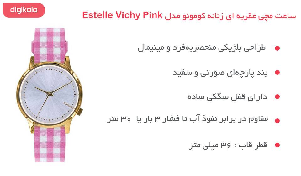 ساعت مچی عقربه‌ ای زنانه کومونو مدل Estelle Vichy Pink infographic