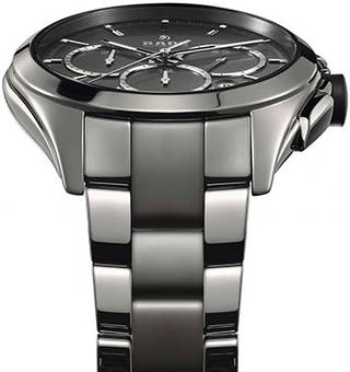 رنگ خاکستری و فوق‌العاده زیبای ساعت، سازگاری کامل با پوست، محکم و کاملا ضدخش‌بودن از ویژگی‌های بارز این ساعت لوکس و سرامیکی هستند که با رنگ‌های ثانوی نظیر رنگ مشکی کلیدها و تاج کوک و صفحه‌ی نوک‌مدادی، ترکیبی کلاسیک و همه‌پسند را پدید آورده‌اند. علاوه‌بر بدنه، شیشه‌ای که وظیفه‌ی محافظت از صفحه را دارد، با استحکام قابل‌توجهی همراه است. این شیشه از جنس سافایر یا یاقوت بوده و دربرابر هرگونه خط و خش کاملا مقاوم است. روی صفحه اولین چیزی که جلب‌توجه می‌کند، سه شمارشگر مربوط به کرنوگراف از جمله ثانیه‌شمار، دقیقه‌شمار و یک ساعت‌شمار است. بین موقعیت ساعت چهار و پنج هم یک تاریخ‌شمار کارآمد و ظریف تعبیه شده است. این تاریخ‌شمار شماره‌ی روز ماه را با ارقام مشکی‌رنگ و مینیاتوری روی پس‌زمینه‌ای روشن نمایش می‌دهد که کاملا خوانا و جذاب دیده می‌شوند. عقربه‌های اصلی هم با ابعادی مطلوب و به صورت شب‌تاب طراحی شده‌اند و عقربه‌ای سوزنی و نقره‌ای آن‌ها را همراهی می‌کند که در کنار ظرافت عقربه‌های زمان‌سنج، ترکیب لوکس و جذابی را پدید آورده‌اند. یکی دیگر از موارد قابل‌توجه در طراحی صفحه، پاندول یا المان لنگرشکلی بوده که در بالای صفحه تعبیه شده است. این پاندول مینیاتوری در بالای صفحه هم‌زمان با حرکت چرخ‌دنده‌های ساعت حرکت می‌کند که در نوع خود بسیار جذاب و جالب به نظر می‌رسد.