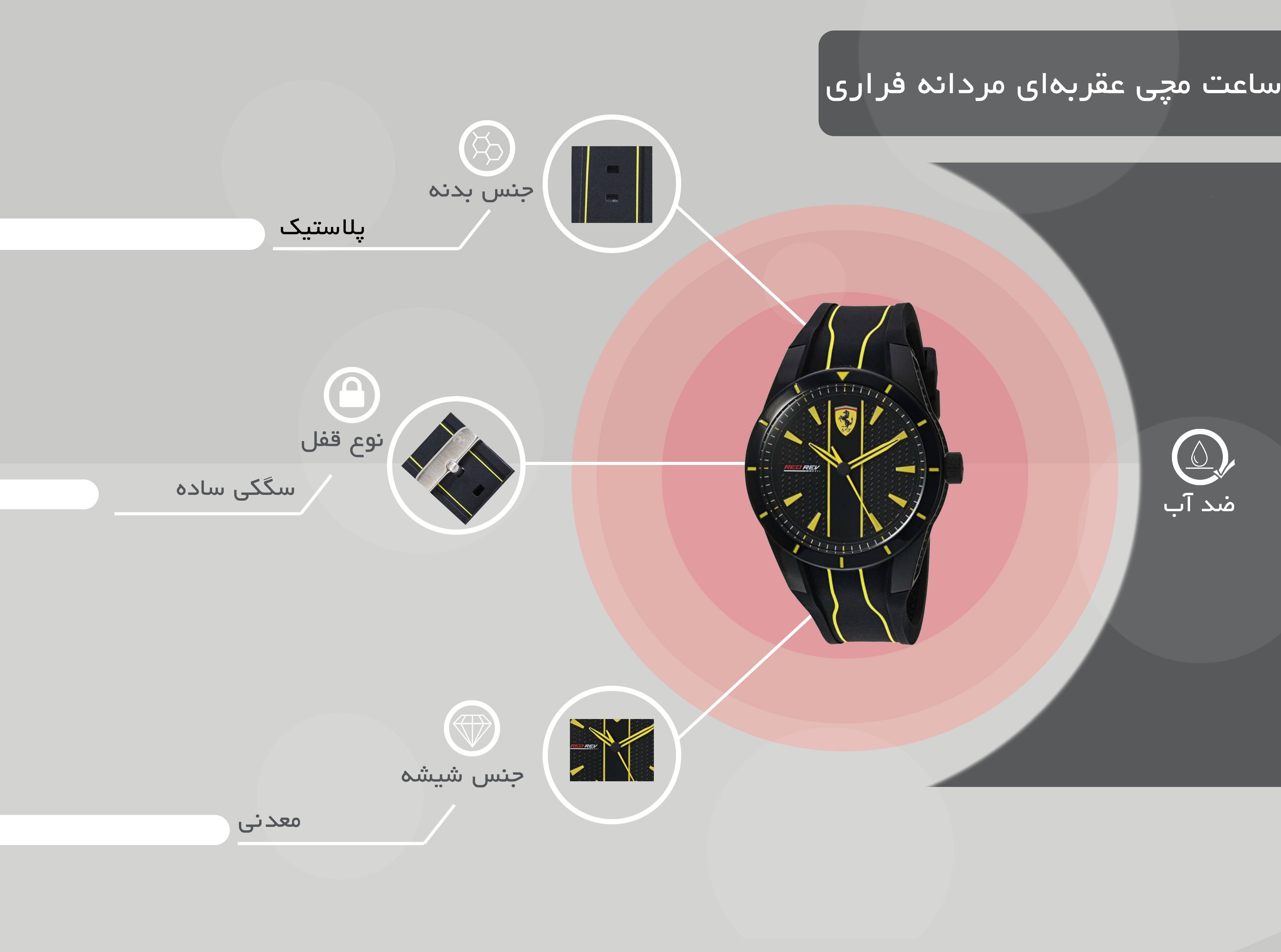 همه ما همیشه میخواهیم ظاهری آراسته و شیک داشته باشیم بههمین دلیل علاوهبر لباس، از زیورآلات و وسایل مختلفی نیز استفاده میکنیم. یکی از لوازمی که میتواند تکمیل کننده استایل ما باشد، ساعت مچی است. تقریبا همه برند فراری را میشناسند و شاید دوست داشته باشند ساعتی با نام این برند خریداری کنند. این ساعت لوکس برای آقایان مناسب است. جنس بدنه این ساعت پلاستیک بوده و از کیفیت بسیار بالایی برخوردار است. جنس بند این ساعت نیز لاستیکی بوده و ساختار مستحکمی دارد. فرم قاب این ساعت بهصورت گرد طراحی شده و در صفحه آن از رنگ زرد به زیبایی استفاده شده است که با ترکیب رنگ مشکی بند آن، ظاهری بسیار شیک و زیبا ساخته است. جنس شیشه ساعت مچی عقربهای مردانه فراری مدل 830482 نیز از مواد معدنی است که کیفیت بسیار بالایی دارد. این ساعت میتواند بهعنوان اسپرت، لوکس و روزمره مورد استفاده قرار گیرد.