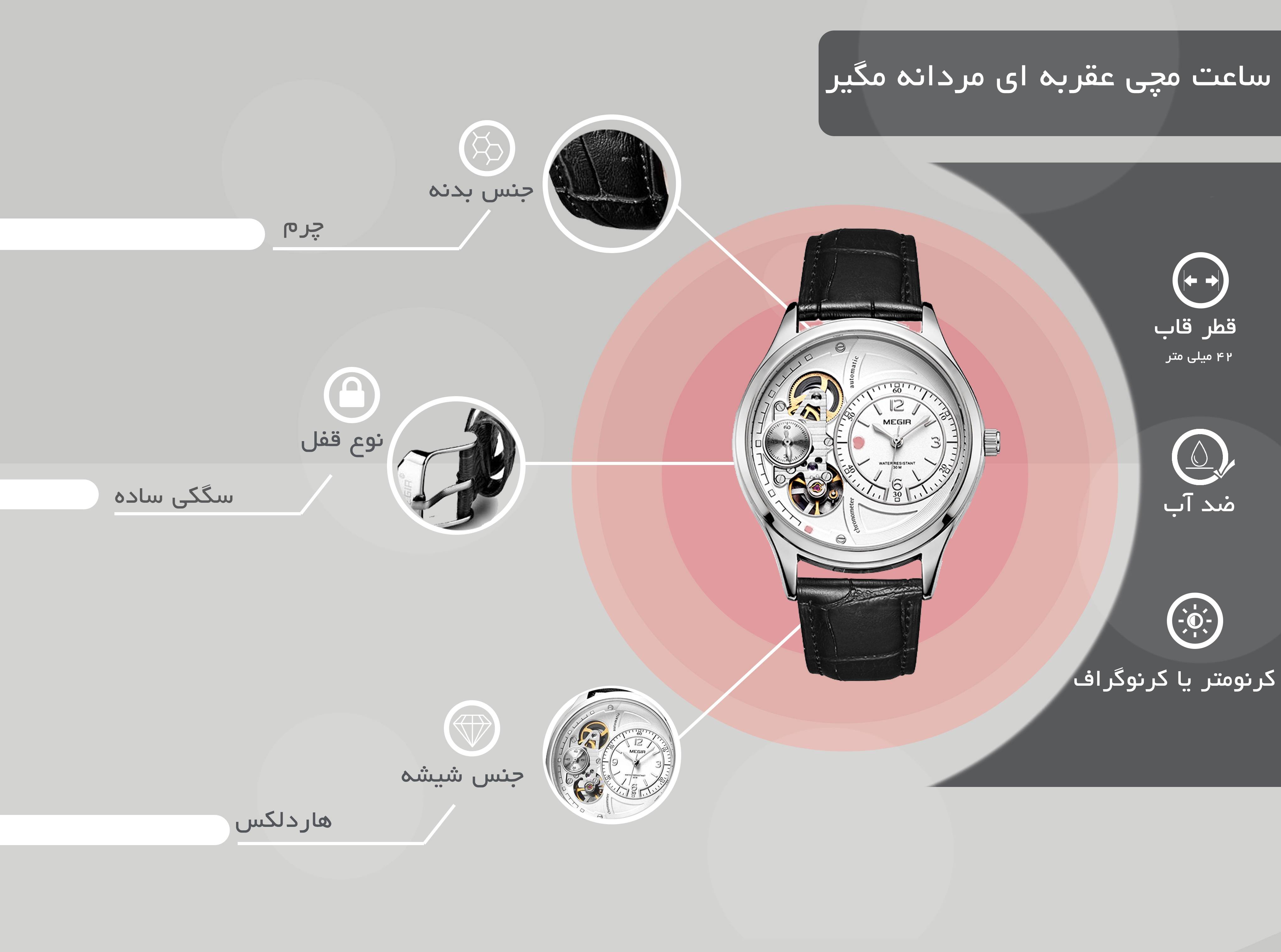 یکی از مهمترین نکاتی که در زندگی روزمره همه ما تأثیر زیادی دارد زمان است. داشتن ساعت مچی به شما کمک میکند که همواره زمان را بدانید و کارهای خود را طبق برنامه و با زمانبندی دقیق به انجام برسانید. ساعت مچی عقربهای مردانه مگیر مدل ML2017GBK-7 میتواند در این زمینه به شما کمک کند. این ساعت علاوهبر کارایی که دارد بسیار باکیفیت بوده و جلوه ظاهری زیبایی دارد. رنگ صفحه این ساعت سفید-نقرهای بوده و با رنگ بدنه آن بهخوبی هماهنگ است. جنس بدنه آن از روی بوده و رنگ بدنه آن نقرهای است و برای کسانی که حساسیت دارند هم مناسب است. از ویژگیهای مثبت این ساعت میتوان به مقاومت دربرابر آب اشاره کرد. همچنین ساعت مچی عقربهای مردانه مگیر مدل ML2017GBK-7 دارای شیشهای از جنس هاردلکس است. جنس بند این ساعت چرم بوده و به رنگ مشکی است که زیبایی ساعت را افزایش داده است. ساعت مچی عقربهای مردانه مگیر مدل ML2017GBK-7 یک انتخاب مناسب برای آقایان خوشپوش و خوش سلیقه است.