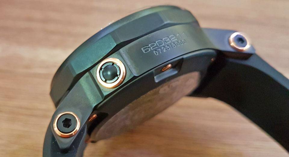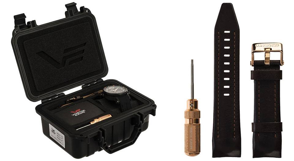 همراه ساعت دو بند مختلف عرضه می‌شود تا نه‌تنها برای استفاده‌های مختلف ورزشی از جمله شناگری، بلکه برای استفاده‌ی روزمره هم کاملا قابل استفاده باشد. یکی از بندها قهوه‌ای‌رنگ از جنس چرم و دیگری از نوع سیلیکونی به رنگ مشکی است که هر دو از نظر کیفی نیز کاملا ایدئال به نظر می‌رسند. بدنه‌ی ساعت به رنگ مشکی مات طراحی شده و در بعضی از نقاط آن نظیر کلیدهای کرنوگراف و روی قاب رویی یا bezel از کمی رنگ رزگلد هم استفاده شده که به زیبایی ساعت برای آقایان شیک‌پوش و طرفدار این سبک افزوده است. هر دو بند عرض 25 میلی‌متر و قفلی سگکی و استیل به رنگ رزگلد دارند تا با هر دو بند ترکیبی کاملا متناسب و البته راحتی مطلوبی را شاهد باشیم. کلیدهای کرنوگراف و تاج کوک در سمت راست با ابعادی مطلوب طراحی شده تا استفاده از قابلیت زمان‌سنج و تنظیم ساعت به راحتی قابل انجام باشد. در سمت چپ اولین چیزی که جلب توجه می‌کند، دریچه‌ی هلیوم است که در موقعیت ساعت 10 واقع شده است. در کنار آن هم شماره‌ی حک شده‌ی تولید ساعت را که نشانگر عدد تولید از مجموع 3000 ساعت است، مشاهده می‌کنیم.