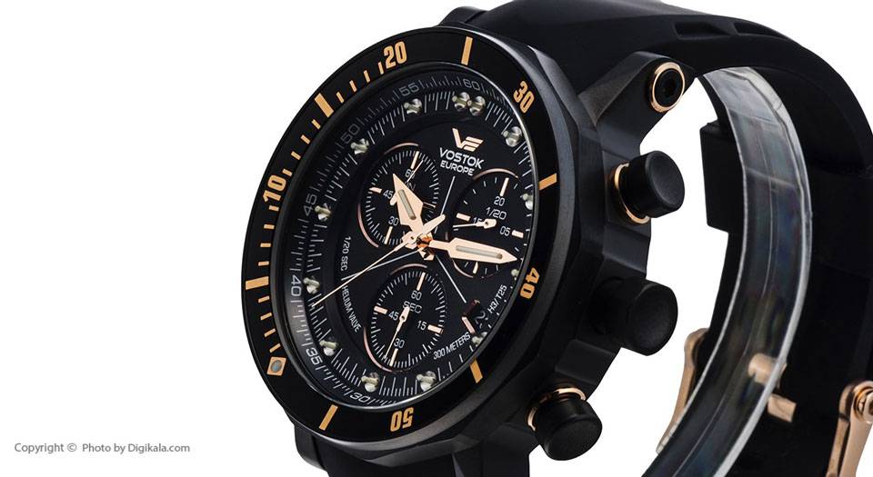 مهم‌ترین ویژگی اغلب ساعت‌های مچی کلاسیک‌اسپرت که نام ساعت غواصی را هم یدک می‌کشند، مقاومت قابل‌توجه آن‌ها در برابر آب است. ساعت مچی عقربه‌ای «وستوک یوروپ» مدل « Vostok Europe 6S30-6203211»، یکی از این مدل‌های کلاسیک‌اسپرت است که با قابلیت‌هایی که به آن اشاره می‌کنیم، یک مدل خاص و حرفه‌ای به شمار می‌رود. همانطور که در نام یا رفرانس ساعت هم اشاره شده، در طراحی این مدل از یک موتور کوارتز ژاپنی Miyota 6S30 استفاده شده که در کنار دقت بالا، قابلیت‌هایی نظیر کرنوگراف و تاریخ‌شمار را نیز به همراه دارد. این مدل از سری «Lunokhod 2» (برگرفته از نام یک فضاپیمای روسی)، دارای قابی به قطر 49 میلی‌متر است و بدنه‌ی مستحکم و کاملا مقاوم در برابر آب آن 17.5 میلی‌متر ضخامت دارد. اولین چیزی که قصد داریم به آن اشاره کنیم، قابلیت تخلیه‌ی گاز هیدروژن برای غواصان است که در کمتر ساعت روزمره و ورزشی مشاهده می‌شود. این قابلیت برای غواصان حرفه‌ای کاربرد دارد که در عمق بسیار زیاد و وجود گاز هلیوم (گاز ترکیبی مورد استفاده‌ی غواصان در کنار اکسیژن) که اختلاف فشار می‌تواند برای ساعت مشکل‌ساز شود، این دریچه به خروج مولکول‌های بسیار ریز هلیوم و جلوگیری از شکستن ساعت می‌انجامد. با توجه به قابلیت کرنوگراف، سه صفحه‌ی شمارشگر در نظر گرفته شده و تاریخ‌شمار در سمت راست صفحه، شماره‌ی روز ماه را نمایش می‌دهد. کرنوگراف این مدل، از دقت بسیار بالایی برخوردار است و به کاربر امکان زمان‌سنجی با دقت کسر 20 ثانیه را می‌دهد. در کنار عقربه‌های اصلی که به صورت شب‌تاب طراحی شده‌اند، نشانگرها نیز از نوع تریتیوم (tritium tubes) طراحی شده‌اند تا روشنایی کم‌نظیر و قابل‌توجهی را بر روی ساعت فراهم سازند. مقاومت در برابر آب تا فشار 3 اتمسفر یا 300 متر هم قابلیت اصلی این مدل به عنوان یک ساعت برای غواصان حرفه‌ای است که از نفوذ آب به بدنه در آب‌های عمیق نیز جلوگیری می‌کند. این مدل همراه دو جفت بند عرضه می‌شود که هر دو برای استفاده‌ی روزمره مناسب بوده و بند لاستیکی برای استفاده در آب یا موقعیت‌های ورزشی نیز قابل استفاده خواهد بود. شیشه‌ی معدنی انتخاب شده برای ساعت هم از نوع کریستال K1 است که در برابر ضربه و در برابر خط و خش مقاومت بیشتری نسبت به شیشه‌های معدنی معمول دارد. در مجموع این مدل اسپرت و لوکس با توجه به طراحی جذاب و مهیج و قابلیت‌های ذکر شده، بدون شک یکی از جذاب‌ترین انواع ساعت برای طرفداران ساعت‌های لوکس و آقایان شیک‌پوش ورزش‌دوست خواهد بود.