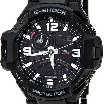 ساعتهای جیشاک مهیج و متفاوت GA-1000، دارای دو سنسور اصلی قطبنما و دماسنج هستند که آن را بیشتر از همیشه به همراهی جذاب برای ماجراجویی تبدیل میکند. یکی از این دو سنسور قطبنمای دیجیتال است که شما را به شکلی حرفهای در جهتیابی یاری خواهد کرد. قطبنمای ساعت پس از فعالسازی قادر است تا 20 ثانیه به صورت ممتد جهت را با کمک عقربهها به شما نشان دهد. قطبنمای ساعت ضمن سیستم کالیبراسیون دوجهته، صرف نظر از اینکه ساعت را کف دست و روی سطحی صاف قرار دهید یا روی مچ شما باشد، درستترین زاویه را با دقت یک درجه به شما نشان خواهد داد. قطبنمای ساعتهای G-Shock GA-1000 در یک نمایشگر دیجیتال زاویه و در نمایشگر دیگر (بالا سمت راست) یکی از جهات شانزدهگانه را نمایش میدهد. دماسنج ساعتهای GA-1000 از سری ساعتهای جیشاک هم قادر است دمای 10- تا 60 درجهی سانتیگراد را اندازهگیری کند. دقت این سنسور 0.1 درجهی سانتیگراد است که بدون شک بین مدلهای دیگر دقت قابلتوجه و کارآمدی برای آقایان ماجراجو به شمار میرود.