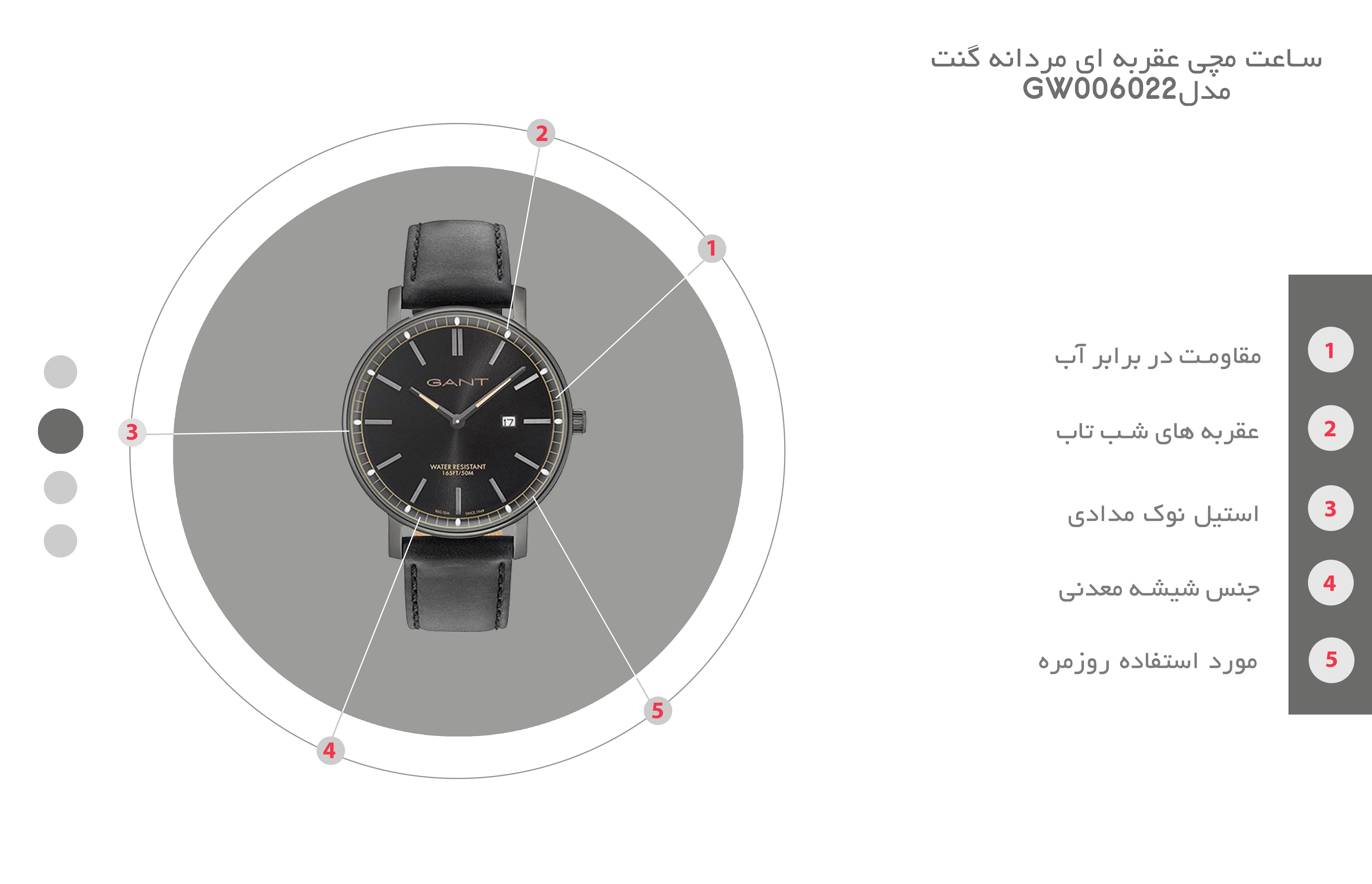 یکی از مهمترین نکاتی که در زندگی روزمره همه ما تأثیر زیادی دارد زمان است. داشتن ساعت مچی به شما کمک میکند که همواره زمان را بدانید و کارهای خود را طبق برنامه و با زمانبندی دقیق به انجام برسانید. ساعت مچی عقربهای مردانه گنت مدل GW006022 میتواند در این زمینه به شما کمک کند. این ساعت علاوهبر کارایی که دارد بسیار باکیفیت بوده و جلوه ظاهری زیبایی دارد. رنگ صفحه این ساعت مشکی بوده و با رنگ بدنه آن بهخوبی هماهنگ است. جنس بدنه آن استیل ضدزنگ بوده و رنگ بدنه آن نوک مدادی است و برای کسانی که حساسیت دارند نیز مناسب است. از ویژگیهای مثبت این ساعت میتوان به مقاومت دربرابر آب آن اشاره کرد. همچنین ساعت مچی عقربهای مردانه گنت مدل GW006022 دارای عقربههای شبتاب و تاریخشمار است. جنس بند این ساعت چرم بوده و به رنگ سرمهای است که زیبایی ساعت را افزایش داده است. ساعت مچی عقربهای مردانه گنت مدل GW006022 یک انتخاب مناسب برای آقایان خوشپوش و خوش سلیقه است.