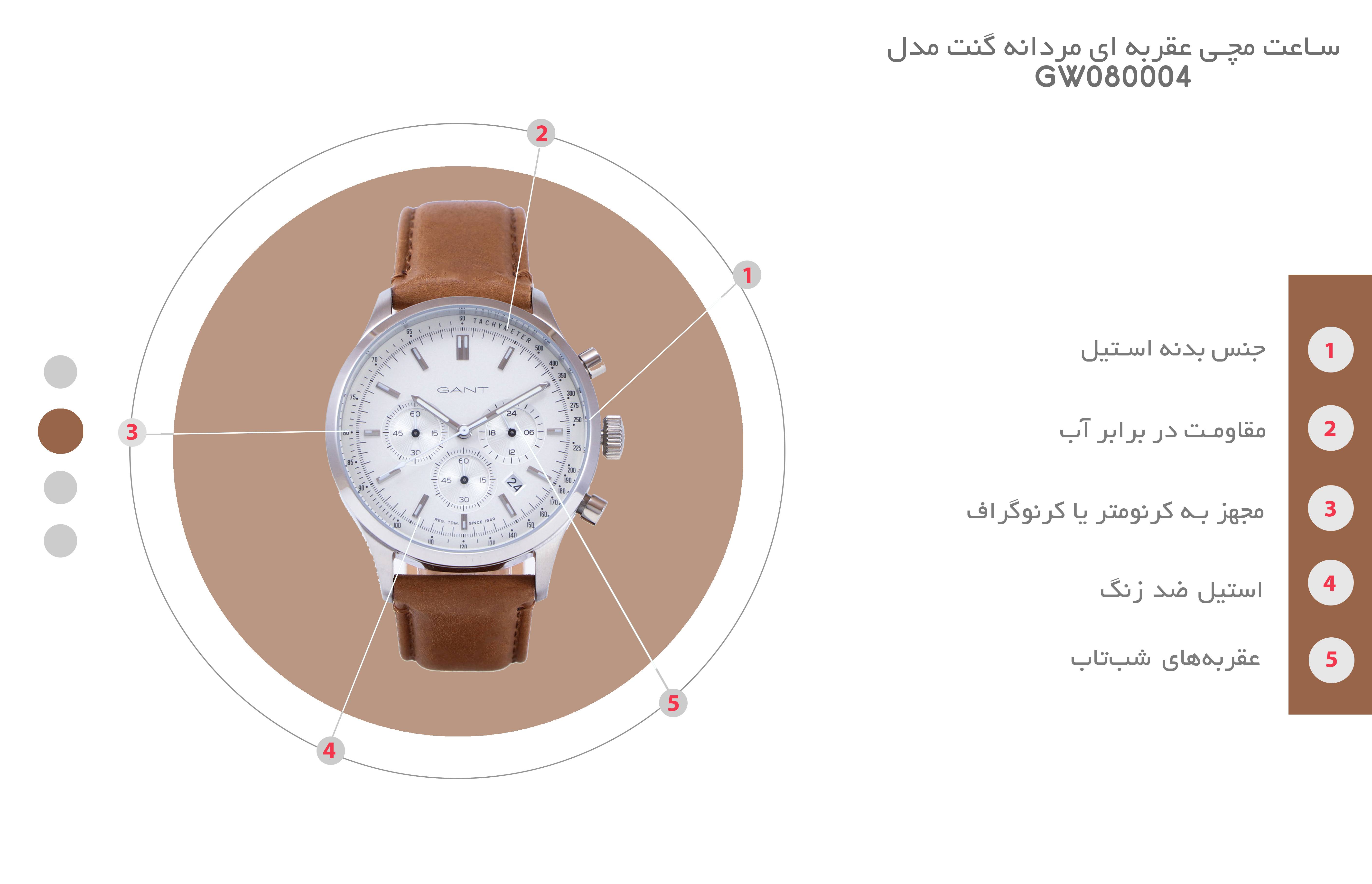 یکی از مهمترین نکاتی که در زندگی روزمره همه ما تأثیر زیادی دارد زمان است. داشتن ساعت مچی به شما کمک میکند که همواره زمان را بدانید و کارهای خود را طبق برنامه و با زمانبندی دقیق به انجام برسانید. ساعت مچی عقربهای مردانه گنت مدل GW080004 میتواند در این زمینه به شما کمک کند. این ساعت علاوهبر کارایی که دارد بسیار باکیفیت بوده و جلوه ظاهری زیبایی دارد. رنگ صفحه این ساعت سفید بوده و با رنگ بدنه آن بهخوبی هماهنگ است. جنس بدنه آن استیل ضدزنگ بوده و رنگ بدنه آن نقرهای است و برای کسانی که حساسیت دارند مناسب است. از ویژگیهای مثبت این ساعت میتوان به مقاومت دربرابر آب آن اشاره کرد. همچنین ساعت مچی عقربهای مردانه گنت مدل GW080004 دارای عقربههای شبتاب و تاریخشمار است. جنس بند این ساعت چرم بوده و به رنگ قهوهای است که زیبایی ساعت را افزایش داده است. ساعت مچی عقربهای مردانه گنت مدل GW080004 یک انتخاب مناسب برای آقایان خوشپوش و خوش سلیقه است.