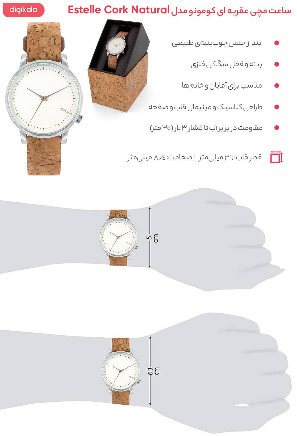 مشخصات فنی Komono Estelle Cork Natural Watch