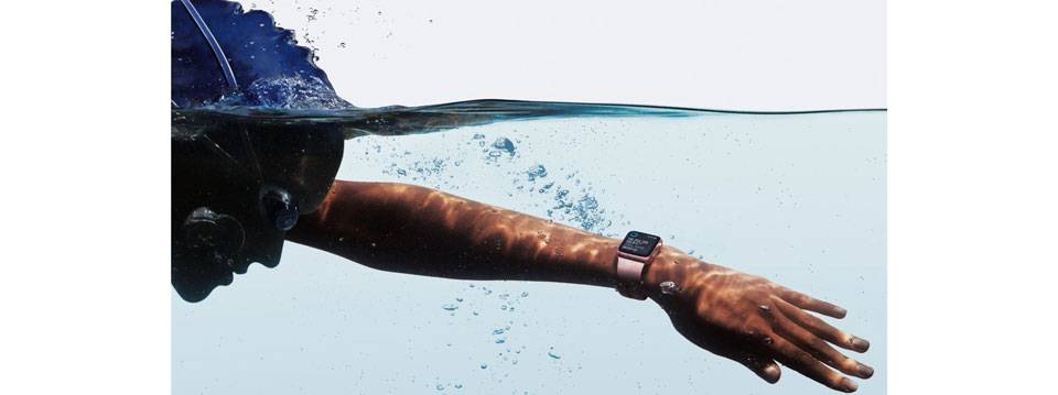 مقاومت دربرابر آب: اپل واچ 2 مقاومت بالایی دربرابر آب دارد و با استاندارد 22810:2010 ISO و طراحی منحصربه‌فرد بدنه، می‌توان آن را به هنگام شنا در آب‌های آزاد یا استخر استفاده کرد. اپل واچ 2 می‌تواند فشار آب را تا 50 متر یا 5 اتمسفر تحمل کند. این رقم در عمل بسیار بیشتر از مقاومت ساعت‌های کلاسیک یا عقربه‌ای است؛ بنابراین می‌توان اپل واچ جدید را به نوعی ضدآب نامید. به گفته‌ی اپل، سری قبل تنها برای موارد معمول نظیر بارش باران دربرابر آب مقاوم بود؛ درحالی‌که سری جدید را می‌توان بدون نگرانی برای شنا در آب‌های کم‌عمق استفاده کرد. اپل واچ 2 حتی امکان آنالیز کامل فعالیت‌های شما هنگام شنا را دارد.