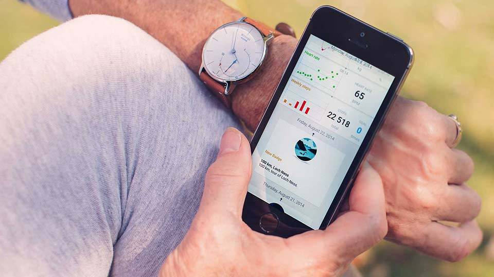از ویژگیهای ظاهری Activite Withings که عبور کنیم به قابلیتهای آن در پیگیری فعالیتهای بدنی میرسیم. پشت ظاهر ساده و کلاسیک این ساعت زیبا یک سنسور شتابسنج سه محوره مخفی شده است. این سنسور حرکات بدن شخص را تشخیص میدهد و بهاینترتیب میتواند تعداد گامهای برداشتهشده را بشمارد. اما برای دسترسی به اطلاعاتی که توسط شتابسنج جمعآوری میشود باید از یک گوشی یا تبلت هوشمند کمک گرفت. ابتدا باید اپلیکیشن شرکت ویدینگز به نام «Health Mate» روی موبایل نصب شود. این اپلیکیشن روی سیستمعاملهای اندروید 4.3.3 به بالا و iOS 7.0 به بالا قابلنصب است.