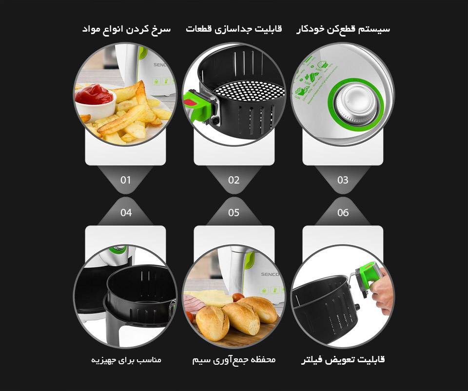 سرخ کن ها یکی از آسان ساز های آشپزی در خانه هستند. استفاده از آن ها دباعث این می شود که غذایی لذیذ و ترد داشته باشیم و در مصرف روغن هم صرفه جویی شود. سرخ کن سنکور مدل SFR 3220WH یکی از سرخ کن های خوبی است که می تواند در آشپزخانه از پس وظایفش به خوبی برآید. این سرخ کن قابلیت تفکیک قطعات دارد و سیستم قطع کن خودکار آن باعث طول عمر بالای آن می شود. فیلتر مورد استفاده در این دستگاه قابل تعویض بوده و این دستگاه دارای محفظه جمع آوری سیم است. ظرفیت این دستگاه ۲.۶ لیتر است و توانی معادل ۱۵۰۰ وات دارد.