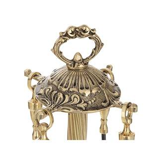 سرویس شومینه 5 تکه کد 001 سرویسی است که همهی مشخصات موردنیاز یک سرویس شومینهی خوب را داراست. طراحی این سرویس بسیار شیک و زیباست و آلیاژ برنج بهکاررفته در آن زیبایی و رنگ خوبی به آن داده است که باعث میشود خود این وسیله یک تزئینی جذاب باشد. استند این مجموعه طراحی زیبا و خوشایندی دارد و دستهی بالایی آن باعث میشود امکان جابهجایی آن بسیار آسان باشد. درعینحال پایهی این استند تنها فضایی 15 در 15 سانتیمتری را اشغال میکند که باعث میشود لازم نباشد فضای خاصی را به آن اختصاص دهید و قابلیت آن را دارد که روی خود شومینه قرار بگیرد. چهار تکهی دیگر این مجموعه، انبر، کفگیر، زغال شکن و فرچه است که هرکدام کارایی مشخصی دارند و باعث میشوند بتوانید شومینه را تمیز نگهدارید و بهراحتی مقادیر موردنیازی از زغال را که به آن احتیاج دارید در آن قرار داده و در صورت نیاز قطعات زغال را بهاندازهی ایده آلتان تبدیل کنید.