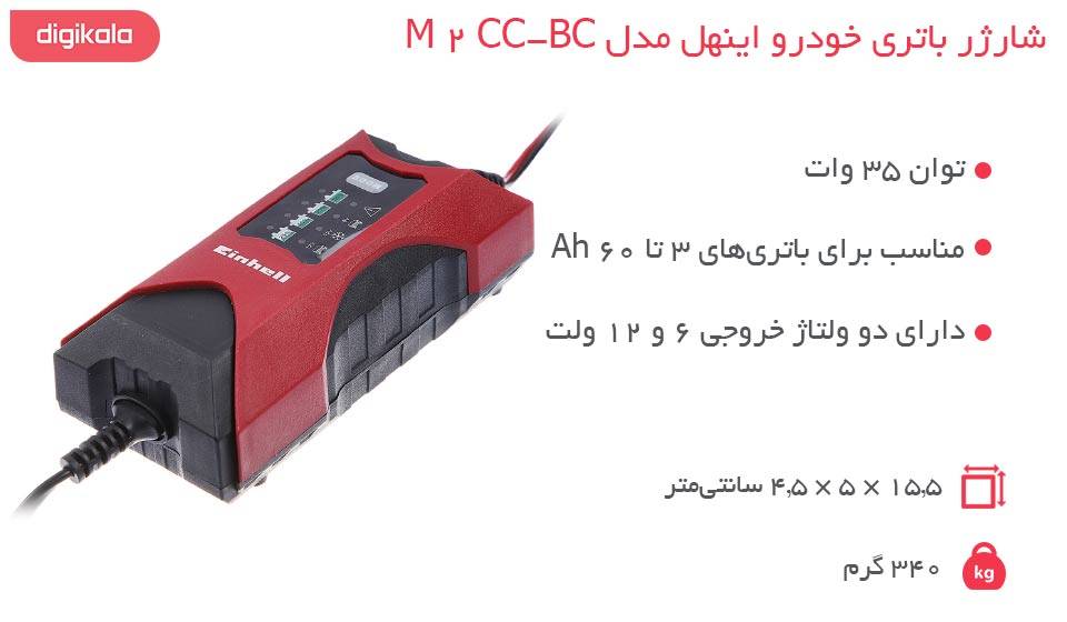 خالی شدن باتری خودرو مشکلی است که اکثر رانندگان با آن مواجه شدهاند. از آنجایی که باتری خودرو نابههنگام خالی میشود و نمیتوان فهمید که چه زمانی این اتفاق قرار است بیفتد، معمولا باعث بر هم خوردن برنامه رانندگان میشود. حال اگر دستگاهی باشد تا هنگام خالی شدن باتری بتوان آن را شارژ کرد، میتوان مشکل را حل کرد. شارژر باتری خودرو (Einhell) «اینهل» بههمین منظور تولید شده است. این محصول که تحت عنوان مدل (CC-BC 2 M) در بازار موجود است، در حقیقت یک شارژر خانگی باتری خودرو و موتورسیکلت است. دستگاه را بهراحتی میتوان به برق شهر متصل کرد و از آن بهعنوان رابطی برای شارژ باتری استفاده کرد. CC-BC 2 M دارای دو ولتاژ خروجی 6 و 12 ولت بوده و مناسب برای باتریهای 3 تا 60 آمپری است. برای سهولت کار، کابلهای محصول مجهز به انبر مخصوص جهت اتصال به باتری خودرو هستند. این دستگاه همچنین ولتاژخروجی با ثباتی را به باتری میدهد که موجب به افزایش طول عمر باتری خودرو میشود.