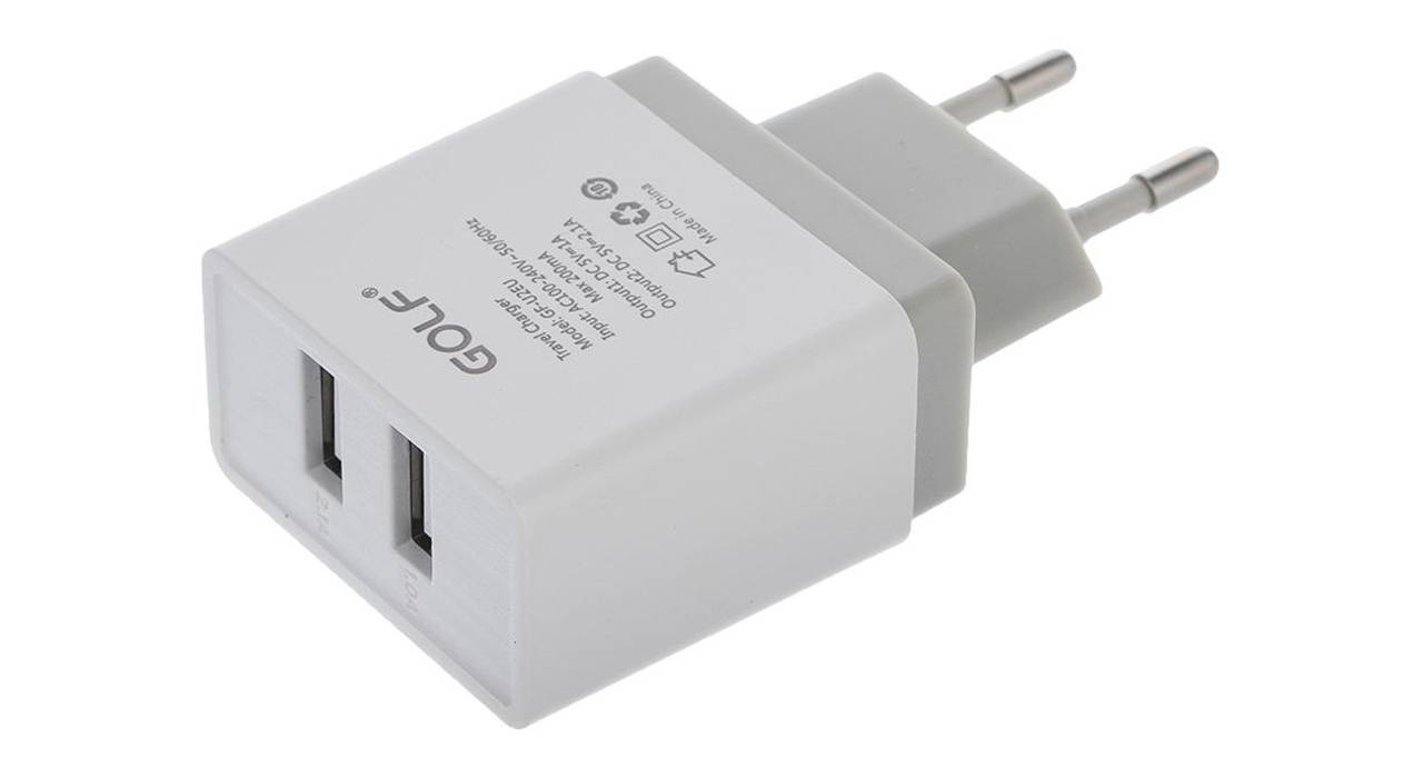 شارژ GF-U2 از جمله محصولات شرکت گلف است که مانند بسیاری از محصولات تولید شده در این حوزه، به شکل یک مکعب مستطیلی با لبههایی خمیده طراحی و به بازار عرضه شده است. این شارژر دیواری با سیستم برق 220 ولت و پریزهای معمولی کاملاً سازگار است و نیازی به مبدل پریز ندارد. در قسمت پشت شارژر 2 پورت USB وجود دارد که امکان شارژ دو دستگاه مختلف به صورت همزمان را امکان پذیر می سازد. شدت جریان خروجی این شارژر برای یک پورت برابر با 2.1 آمپر و برای پورت دیگر برابر با 1 آمپر است. با استفاده از شدتجریان 2.1 آمپر، این محصول میتواند دستگاه الکترونیکی را با سرعت بیشتری شارژ کند. البته این امر به معنی پشتیبانی GF-U2 از فناوری شارژ سریع کوالکام (Quick Charging) نیست. همچنین، بیشتر تبلت ها برای شارژ شدن بهشدت جریان بالا 2 آمپر نیاز دارند؛ بنابراین، بهراحتی میتوانید با استفاده از این شارژر تبلت را هم شارژ کنید.