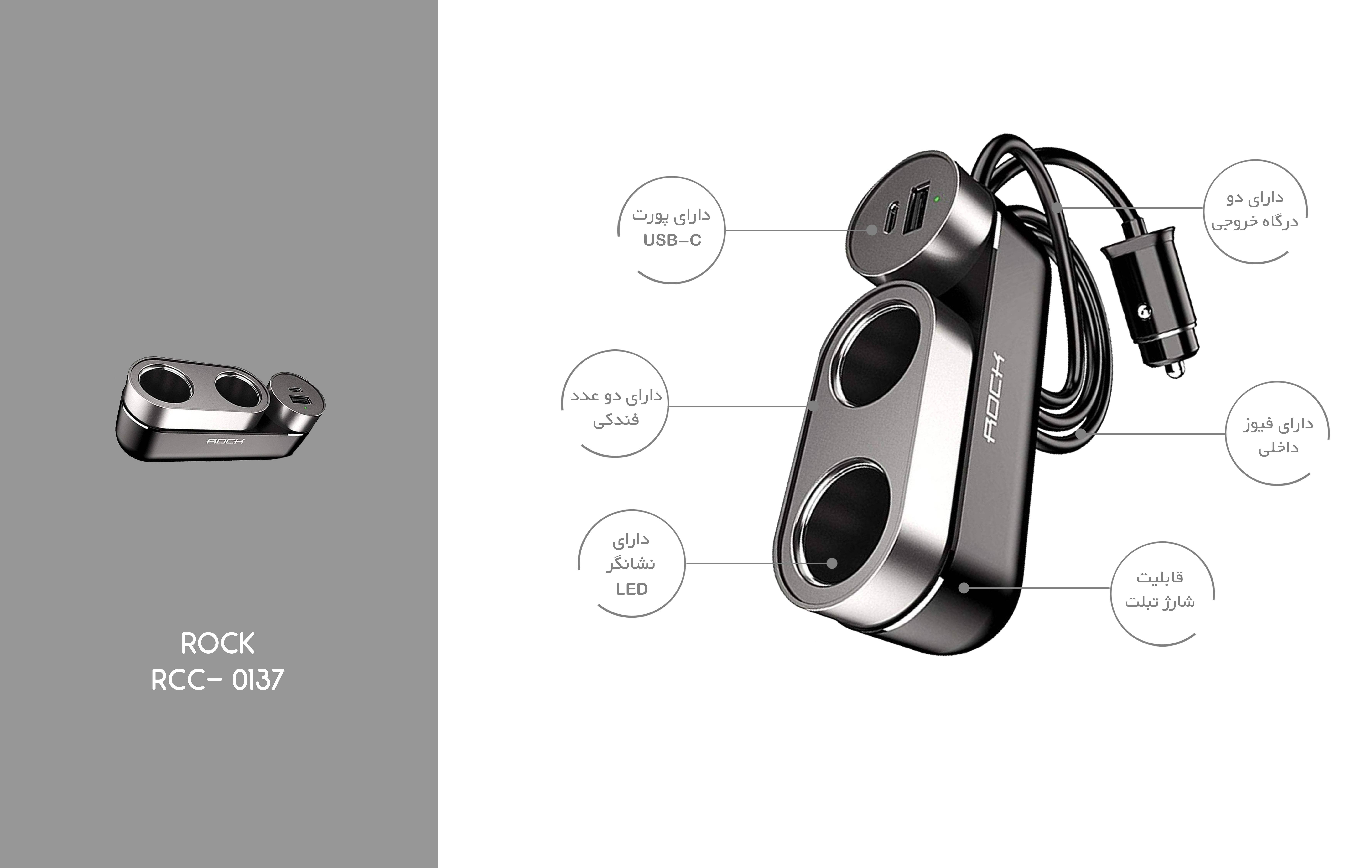 شارژرهای فندکی یکی از لوازم ضروری و مورد نیاز برای خودروها است مخصوصا در زمان سفر و هنگامی که به منبع برق و یا حتی پاوربانک دسترسی نداشته باشید. این وسیله زمانی ارزشمندتر میشود که امکانات ویژه دیگری نیز برای آن درنظر گرفته شده باشد. شارژر فندکی راک مدل RCC-0137 یکی از این وسایل است. این دستگاه قادر است با هر دو ولتاژ ۱۲ و ۲۴ ولت کار کند. این وسیله دارای دو عدد فندکی ماشین است که میتوانید از آنها به عنوان فندک ماشین و یا حتی استفاده از سایر وسایل استفاده کنید. همچنین دو درگاه خروجی روی آن قرار گرفته که مستقیما میتوانید از آنها برای شارژ گوشی و تبلت خود استفاده کنید. این دو درگاه، USB 2.0 و USB-C هستند که میتوانند نیازهای شما را مرتفع کنند. این وسیله دارای فیوز محافظ بوده که از آسیب رسیدن به دستگاهها جلوگیری میکند. همچنین به راحتی میتوانید آن را روی داشبورد یا کنار دنده اتومبیل قرار دهید.