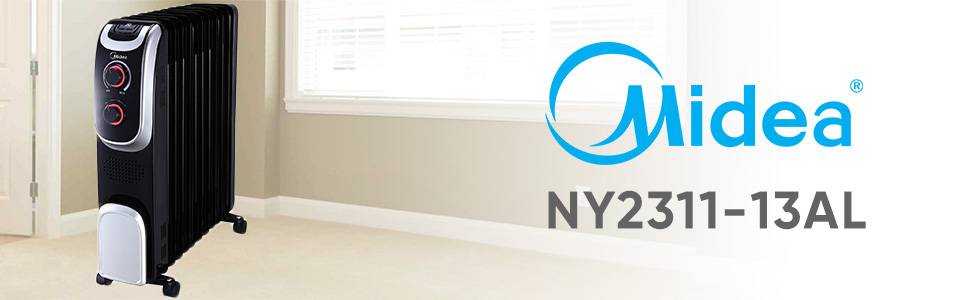 شوفاژ برقی «مایدیا» مدل «NY2311-13AL» یکی از محصولات گرمایشی ساخت این شرکت و از جمله شوفاژهای برقی 11 پره است. بدنهی شوفاژ ظاهری مشابه رادیاتورهای معمولی دارد و ترکیب رنگ مشکی و نقرهای به کار رفته در ساخت آن، ظاهر شکیل و زیبایی به آن بخشیده است. وجود دو چرخ پایه بلند در این شوفاژ علاوهبر اینکه موجب ایجاد فاصلهی مناسب پرههای داغ دستگاه از سطح زمین شده است، جابهجایی آن را هم آسان کرده است. همچنین وجود یک دستهی بزرگ روی بدنهی شوفاژ، به حملونقل بدون دردسر آن کمک کرده است.