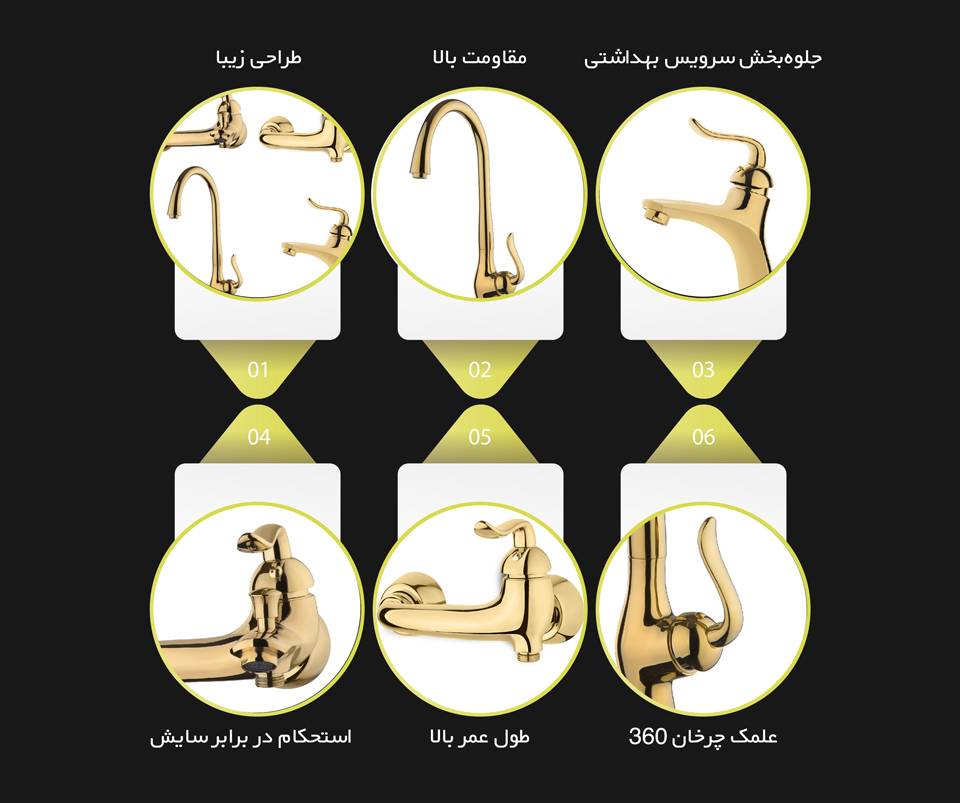 • سایر ویژگی‌ها: علمک چرخان 360 درجه ، دارای آبفشان