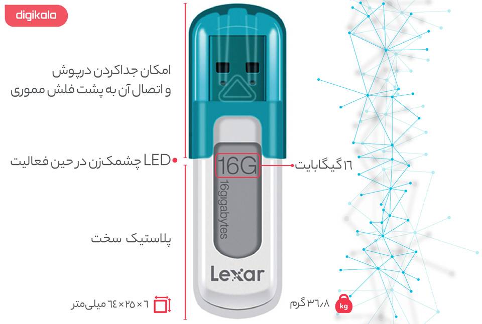مشخصات فنی Lexar JumpDrive V10 Flash Memory - 16GB