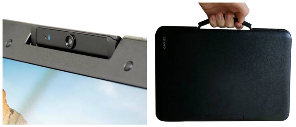 طراحی این لپ‌تاپ ویژگی‌های خاصی دارد که در لپ‌تاپ‌های دیگر دیده نمی‌شود. یکی از آن‌ها وب‌کم این دستگاه بوده که به صورت چرخشی طراحی شده است. این وب‌کم ۱۸۰ درجه می‌چرخد و بهترین گزینه برای کلاس‌های درس است. دانشجویان می‌توانند در حالت اصلی وب‌کم از آن در کلاس‌های درس مجازی و با چرخش ۱۸۰درجه‌ای از آن در کلاس‌های درس حضوری و برای ضبط تصویر و صدای استاد یا ثبت تصاویر از تخته‌ی کلاس استفاده کنند. طراحی هوشمندانه‌ای که درعین‌حال قیمت این دستگاه را پایین نگه می‌‌دارد. قسمت بعدی که متفاوت با سایر لپ‌تاپ‌ها طراحی شده، دستگیره‌ی جمع‌شو در لبه‌ی پشتی و حدفاصل بین دو لولای دستگاه است. این دستگیره به کاربر امکان می‌دهد تا این لپ‌تاپ را مثل یک کیف و به‌راحتی با خود حمل کند. البته احتمالا لنوو به این دلیل این دستگیره را تعبیه کرده است که از افتادن لپ‌تاپ هنگام حمل آن توسط دانشجویان و دانش‌آموزان جلوگیری شود؛ چون همان‌طور که گفتیم، بازار هدف این دستگاه محصلین هستند.