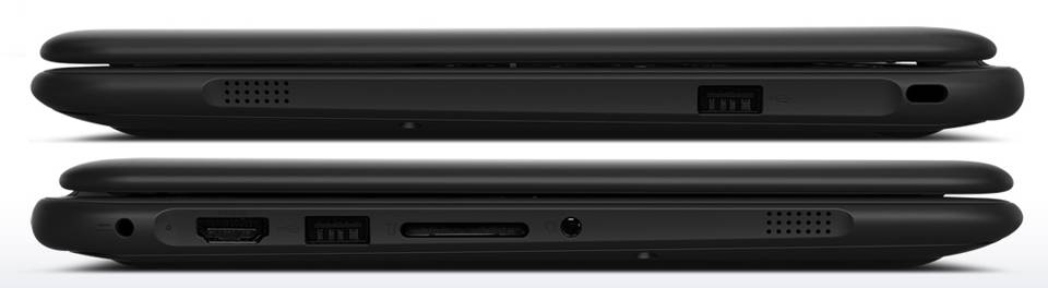 صفحه‌ی ۱۱.۶اینچی این لپ‌تاپ دقت تصویر HD‌ دارد که درواقع معمولی‌ترین کیفیت تصویر درحال‌حاضر است. البته برای انجام کارهای روزانه و تماشای فیلم و کارهای معمولی مناسب است و به کیفیت بالاتر نیازی نیست؛ هرچند که بهتر بود از کیفیت Full HD در این دستگاه استفاده می‌شد. بهترین توجیه می‌تواند این باشد که لنوو نخواسته زیاد هزینه کند و به همان میزان قیمت را هم بالا ببرد. نکته‌ی جذاب این صفحه‌نمایش روکش مات است. استفاده از این روکش بهترین انتخابی بود که لنوو می‌توانست برای چنین لپ‌تاپی درنظر بگیرد؛ چراکه استفاده از این لپ‌تاپ در کلاس‌های درس با وجود نور زیاد و انعکاس تصاویر محیط با وجود روکش براق بسیار آزاردهنده می‌شد؛ اما با استفاده از روکش مات این مشکل کاملا حل شده است.