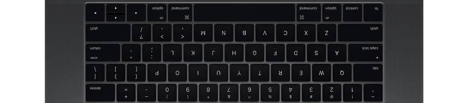 این روزها در بیشتر لپتاپهای دنیا از کیبورد «جزیرهای» (Chiclet) استفاده میشود. اما از آنجایی که اپل همیشه سنتشکن بوده و بهخاطر ابداعاتش مشهور است، از کیبوردی استفاده میکند که به مکانیزم آن «پروانهای» (Butterfly) میگوید. نسل قبلی کیبوردهای اپل با مکانیزم «قیچی» (Scissor) کار میکرد که در اکثر مواقع فقط قسمت مرکزی کلیدها فشار را شناسایی میکردند و پاسخ مناسبی نمیدادند که این مشکل در تایپکردن سریع گاهی مشکلساز میشد. اما اپل در مکبوک پروهای جدید این مکانیزم را کنار گذاشت و نسل دوم سازوکار پروانهای را رونمایی کرد. نتیجهی استفاده از چنین مکانیزمی، کلیدهایی ظریف با عمق بسیار کم، نرم و پاسخگویی فوقالعاده سریع در تمام قسمتهای کلیدهاست که تایپکردن، چه سریع یا معمولی با آنها تجربهی بسیار خوبی برای کاربر دارد. نور پسزمینهی سفید کیبورد هم کارکردن در تاریکی و محیطهای کمنور را ساده کرده است، در کنار این کارایی به زیبایی و لوکسبودن دستگاه هم کمک بسزایی کرده است.